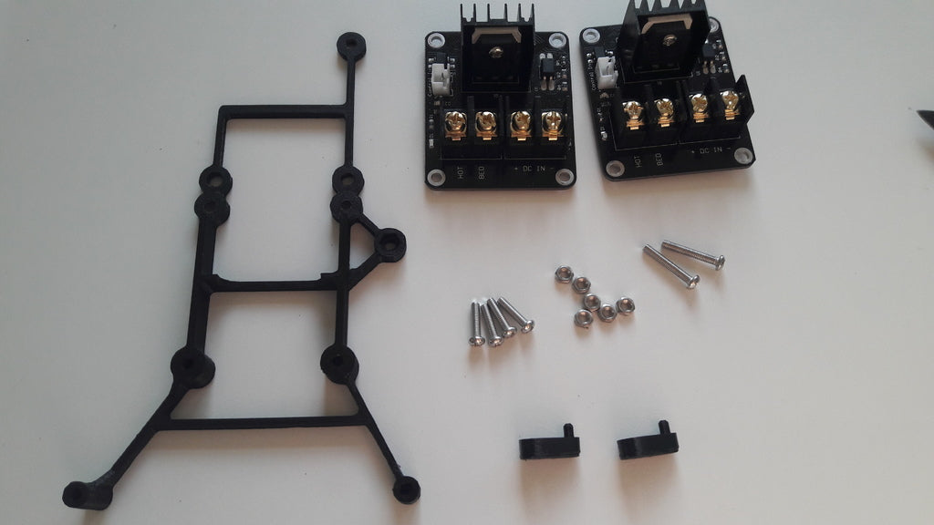 Dieser praktische Dual-MOSFET-Halter bietet eine stabile und übersichtliche Montagelösung für zwei MOSFETs (einen für das Heizbett und einen für das Hotend) auf Ihrem Anet A6 3D-Druckerrahmen. Der Halter wurde mit Fokus auf eine stilvolle Optik und optimale Kabelführung entwickelt und trägt so zu einem aufgeräumten, übersichtlichen Setup bei.