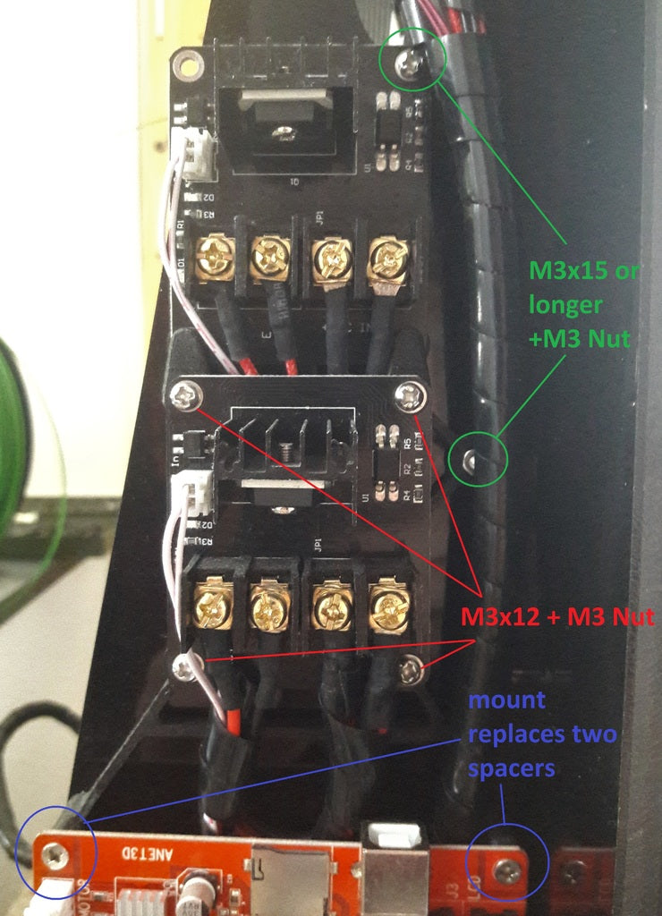 • Effiziente Montage von zwei Mosfets (Hotbed und Hotend) auf dem Anet A6-Rahmen.