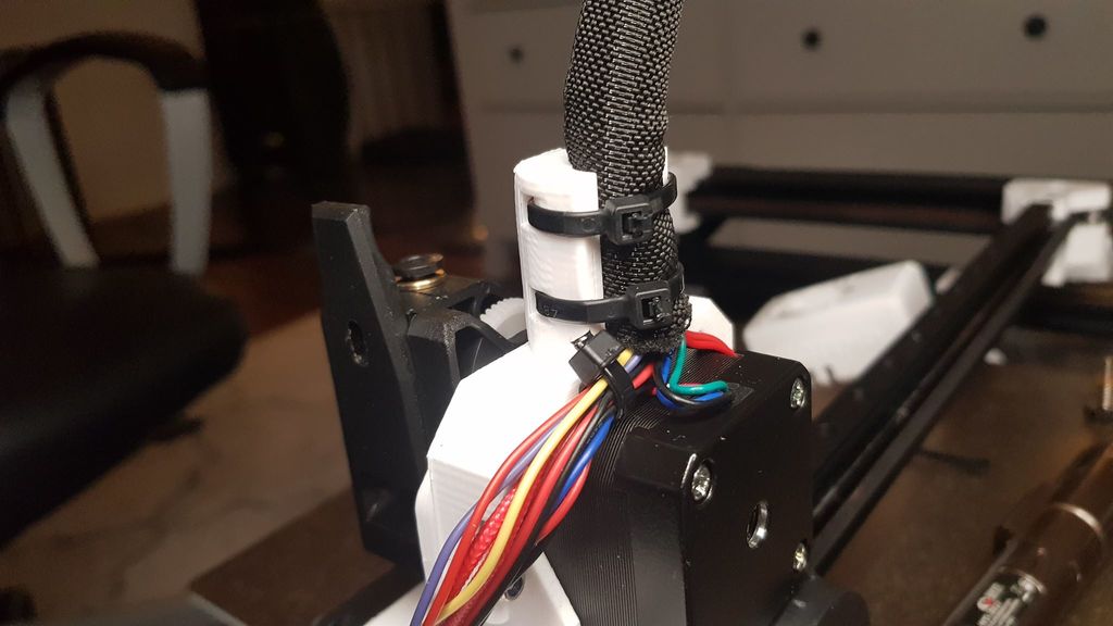 Dieser Kabelhalter wurde speziell für den BLV MGN Cube X-Wagen entwickelt und bietet eine praktische Lösung zur Organisation von Kabeln. Der Zweck besteht darin, die Kabel Ihres Direktantriebsextruders sicher an ihrem Platz zu halten, damit sie die Bewegungen des Druckers während des Betriebs nicht behindern.