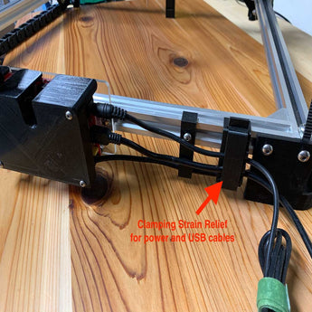 Für zusätzliche Sicherheit befindet sich in der Mitte des Kabelhalters ein kleines Loch, das eine dauerhafte Fixierung mit einer M3- oder 6-32-Schraube ermöglicht. Diese Lösung gewährleistet, dass die Kabel geschützt und ordnungsgemäß verlegt bleiben, was für den langfristigen Betrieb der Maschine unerlässlich ist.