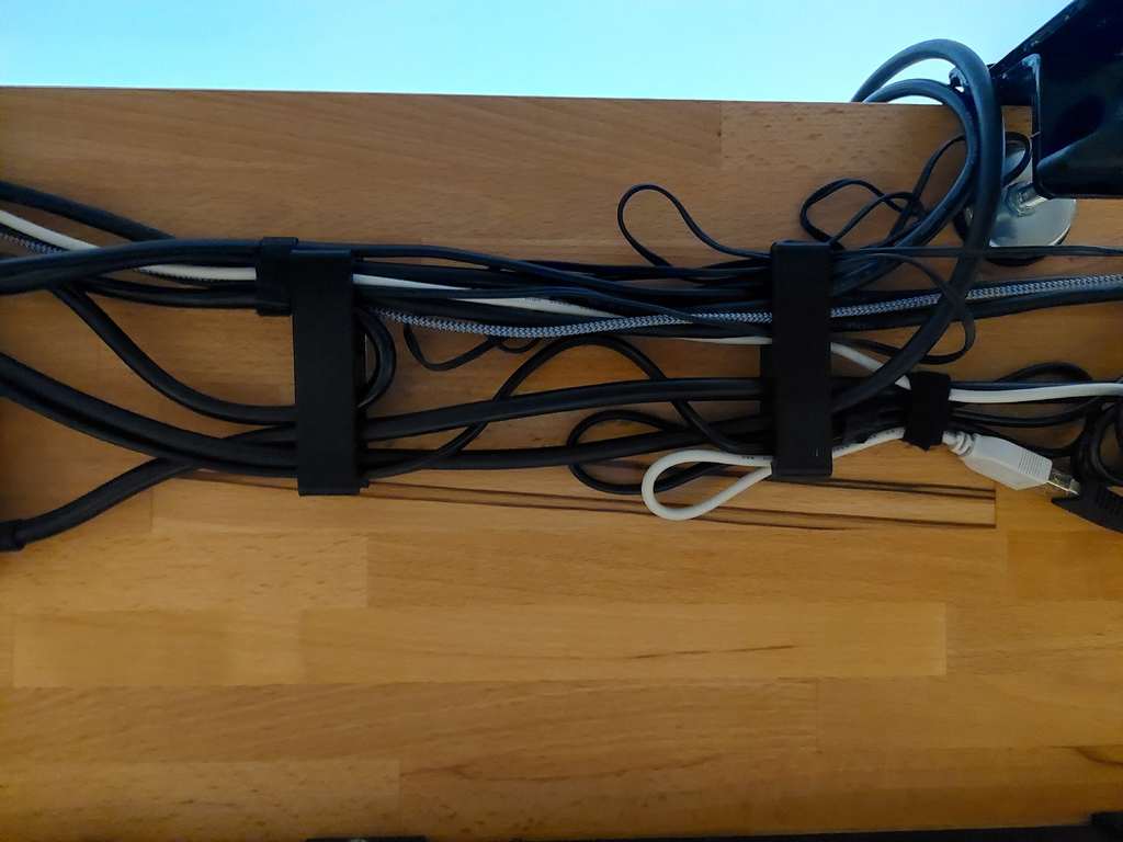 Dezenter Kabelhalter zur Montage unter dem Schreibtisch