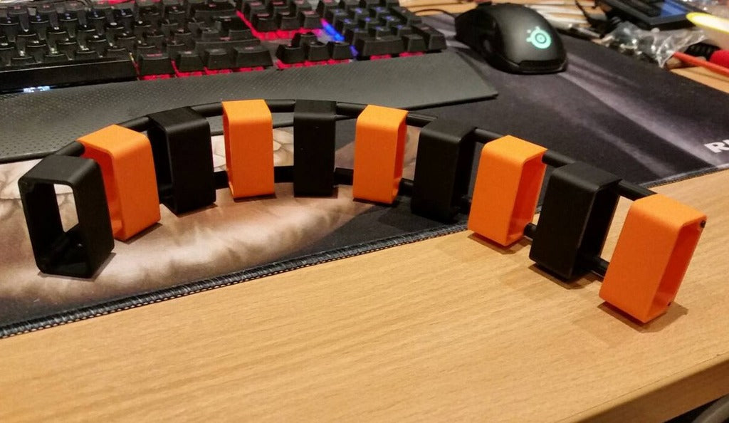 Dieser Kabel-Organizer wurde entwickelt, um Ihre Kabel zu ordnen und Kabelsalat in Ihrem Zuhause oder Büro zu reduzieren. Das Design bietet eine praktische Kabelmanagement-Lösung, mit der Sie Ihre Kabel sammeln und im Auge behalten können, um eine übersichtlichere Umgebung zu schaffen. Das Produkt ist modular aufgebaut, sodass Sie die Länge nach Bedarf anpassen können. Dies sorgt für ein schlankeres Erscheinungsbild und schützt Ihre Kabel vor unnötiger Abnutzung. Mit diesem Kabel-Organizer schaffen Sie einen aufgeräumten Schreibtisch und minimieren Ablenkungen durch Kabelsalat.