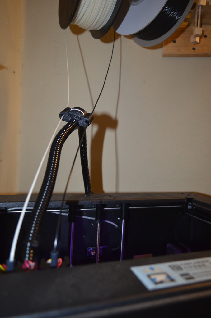 Diese Filamentführung ist für den Flashforge Creator Pro konzipiert und hilft, Ihr Filament während des Druckvorgangs in der Nähe der elektrischen Röhre zu halten. Sie ist besonders nützlich, wenn Sie sich für einen wandmontierten Spulenhalter entschieden haben, da die Original-Spulenhalter für den Flashforge Creator Pro oft nicht für alle Filamentmarken geeignet sind. Durch die Verwendung dieser Führung erreichen Sie eine stabilere Filamentzufuhr, was Ihre Druckqualität verbessern kann. Sie dient als effektiver Drahthalter für Ihr Filament und hilft, Verwicklungen zu vermeiden, insbesondere bei Verwendung einer alternativen Drahtspulenkonfiguration.
