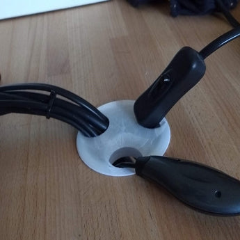 Dieser Kabeldurchlass mit Deckel sorgt für Ordnung auf Ihrem Schreibtisch. Er passt in eine 62-mm-Öffnung und bietet eine diskrete Möglichkeit, Kabel durch Ihre Schreibtischplatte zu führen. Mit dieser Lösung vermeiden Sie sichtbares Kabelgewirr und halten Ihre Kabel zusammen und geschützt. Der Deckel hilft, die Öffnung zu verbergen, wenn sie nicht verwendet wird oder wenn weniger Kabel hindurchgeführt werden müssen. Ein effektiver Kabelorganizer für den Schreibtisch, der zu einem ordentlichen und funktionalen Arbeitsplatz beiträgt. Er kann auch als praktischer Kabelhalter dienen.
