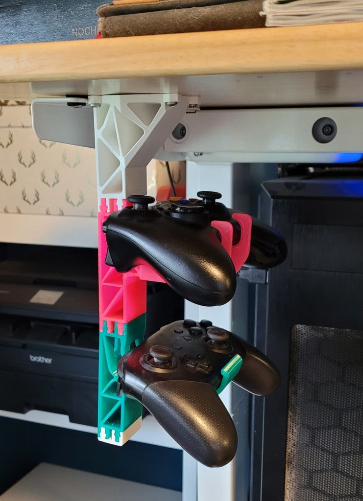 Optimieren Sie Ihren Arbeits- oder Gaming-Bereich mit diesem modularen Controller-Halter, der sich diskret unter Ihrem Schreibtisch montieren lässt. Diese innovative Lösung schafft wertvollen Platz auf dem Tisch und sorgt dafür, dass Ihr Controller übersichtlich und griffbereit ist, wenn Sie ihn brauchen. Der Halter ist vollständig kompatibel mit vorhandenen Controller-Halterungen des Original-Ständerdesigns sowie beliebten Remixen und gewährleistet so eine nahtlose Integration in Ihr bestehendes Setup. Er eignet sich auch besonders gut zur Aufbewahrung von Xbox 360-Controllern.