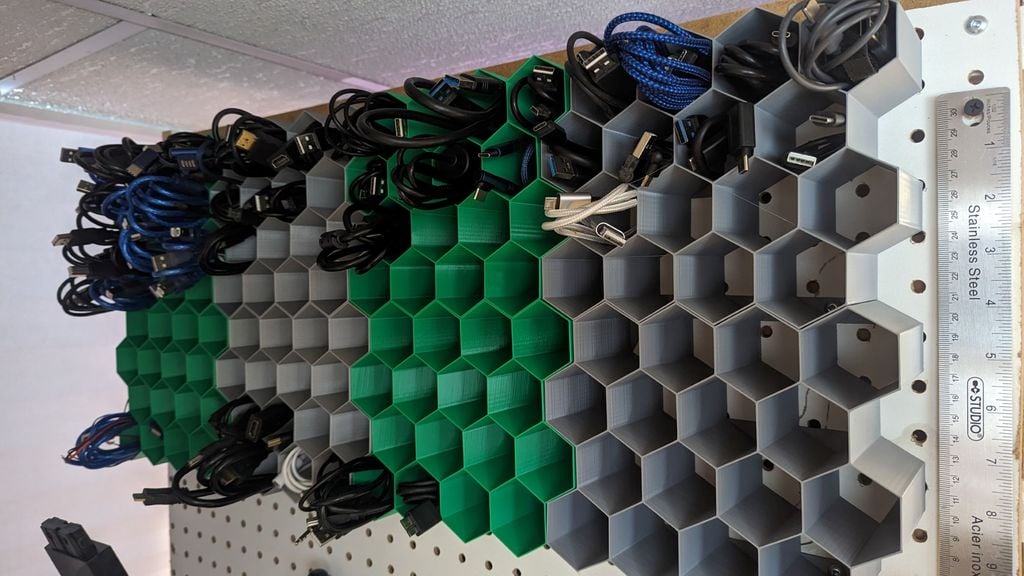 Dieser Kabelhalter sorgt für ein ordentlicheres und effizienteres Kabelmanagement . Das System ermöglicht das Stapeln der einzelnen Abschnitte auf allen Seiten und bietet dem Benutzer die Flexibilität, die Aufbewahrung nach Bedarf anzupassen. Für eine stabile Lösung lässt sich jeder Abschnitt einfach mit vier Schrauben an der Wand befestigen. Dieser Kabelhalter sorgt für eine ordentliche und organisierte Kabelführung und trägt so zu einem aufgeräumten Arbeitsumfeld in Privathaushalten und Büros bei. Er ermöglicht eine maßgeschneiderte Lösung für spezifische Kabelmanagement-Anforderungen.