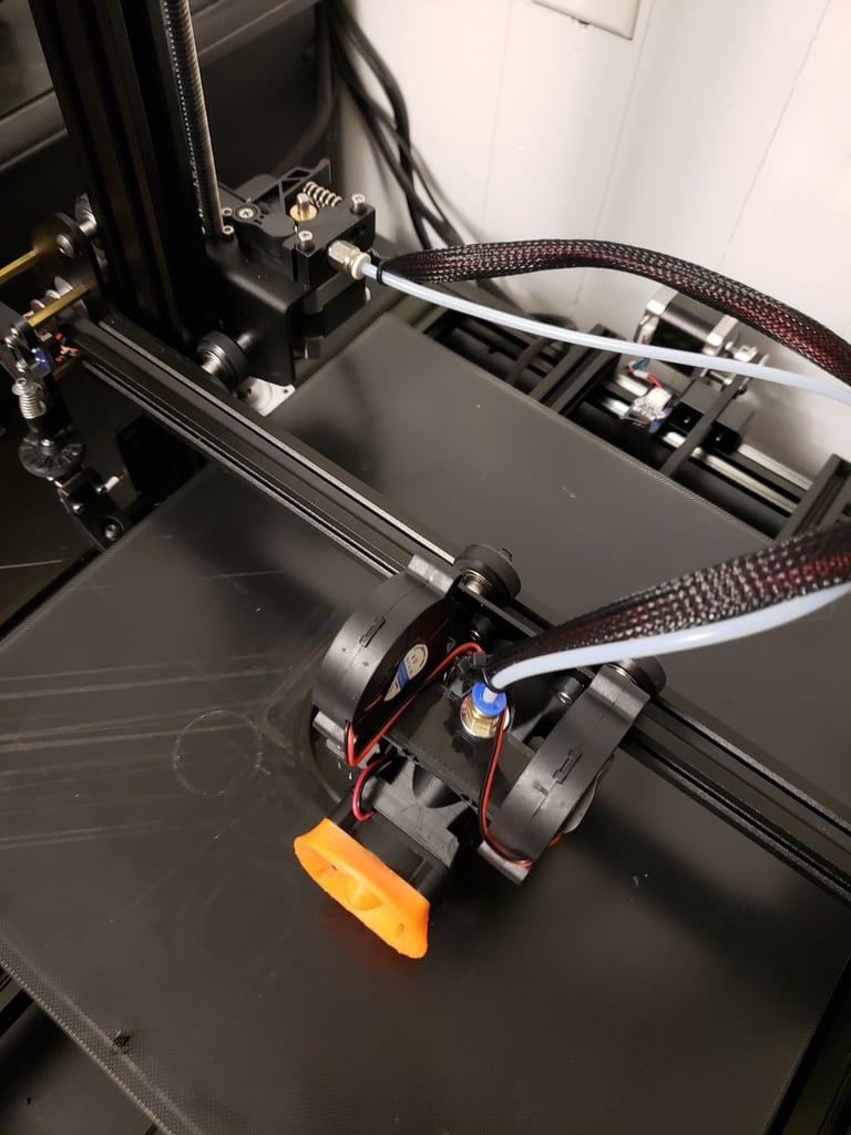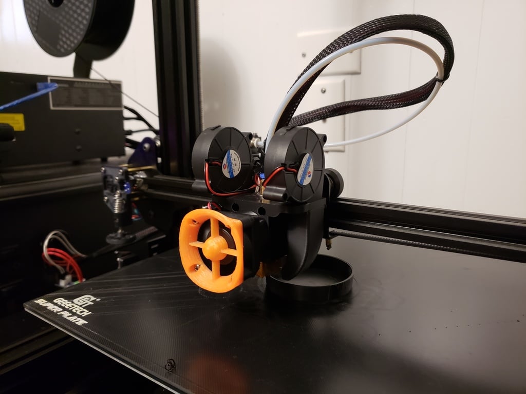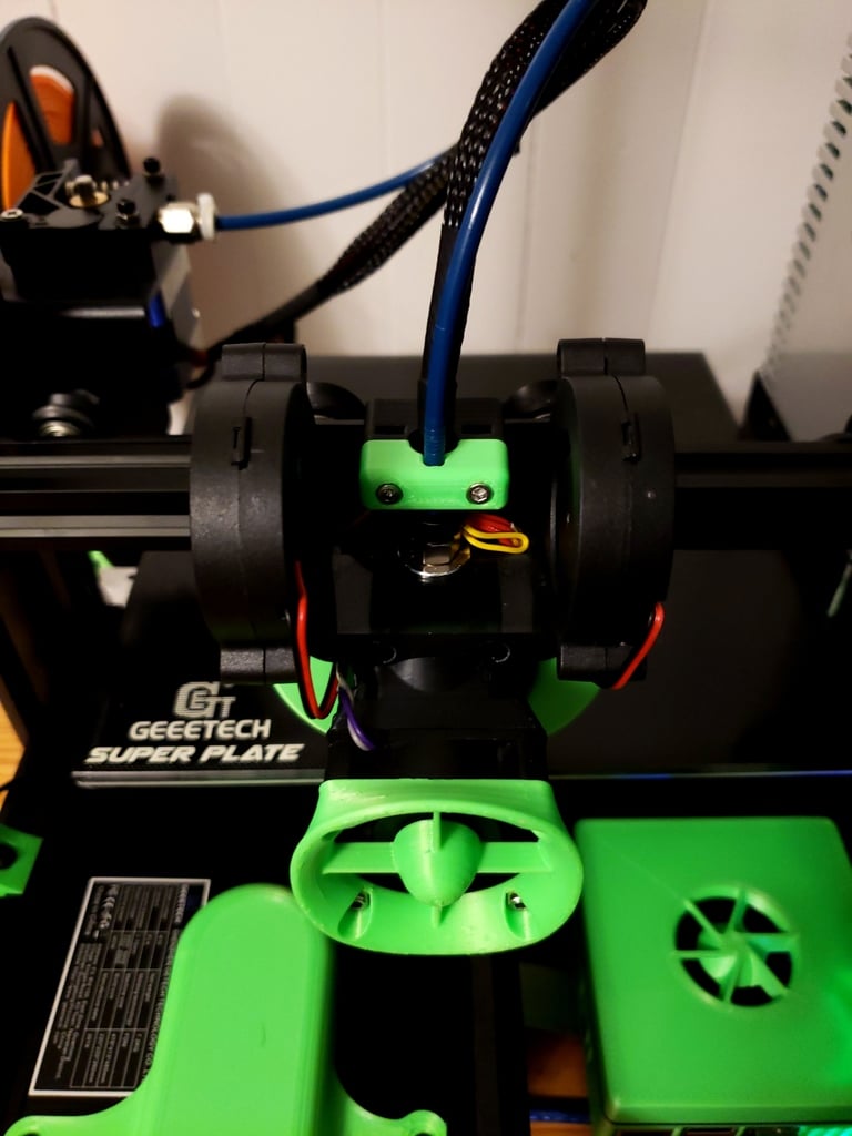 Diese benutzerdefinierte Halterung bietet eine robuste Lösung zur Verbesserung Ihres Geeetech A10- oder Geeetech A30-3D-Druckers. Sie bietet eine stabile Plattform für die Integration eines E3D V6-Hotends , das für seine Leistung und Zuverlässigkeit im 3D-Druck bekannt ist. Das Design unterstützt auch die Installation von zwei 5015-Lüftern , die für eine effiziente Kühlung des Drucks unerlässlich sind und zu saubereren und präziseren Drucken führen. Die Halterung enthält außerdem eine integrierte Kabelhalterung , die zu einem besseren Kabelmanagement und einem übersichtlicheren Aufbau beiträgt. Für Benutzer, die eine automatische Bettnivellierung hinzufügen möchten, besteht auch die Möglichkeit, einen BLTouch- Sensor zu montieren. Diese Upgrade-Lösung bietet mehr Flexibilität und verbesserte Druckergebnisse durch Optimierung des Hotends und der Kühlsysteme Ihres Druckers.