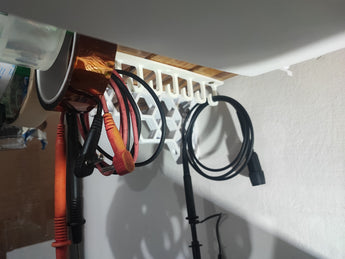 Dieser Kabelhalter mit Haken für unter dem Regal bietet eine praktische Lösung zum Ordnen Ihrer Kabel und Leitungen unter Ihrem Schreibtisch oder Regal. Mit dieser Kabelaufhängung können Sie Ihren Arbeitsplatz ganz einfach aufgeräumt und frei von Unordnung halten. Durch die diskrete Platzierung unter einem Regal schaffen Sie einen harmonischeren und übersichtlicheren Raum, in dem die Kabel versteckt, aber dennoch leicht zugänglich sind. Dieses Design ist besonders nützlich beispielsweise an einer Elektronik-Werkbank oder im Homeoffice, wo ein gut organisierter Arbeitsplatz unerlässlich ist. Das Produkt hilft, Ihre elektrischen Anschlüsse ordentlich und sicher aufzubewahren und dient als effektiver Kabelhalter, um Kabelsalat zu vermeiden.