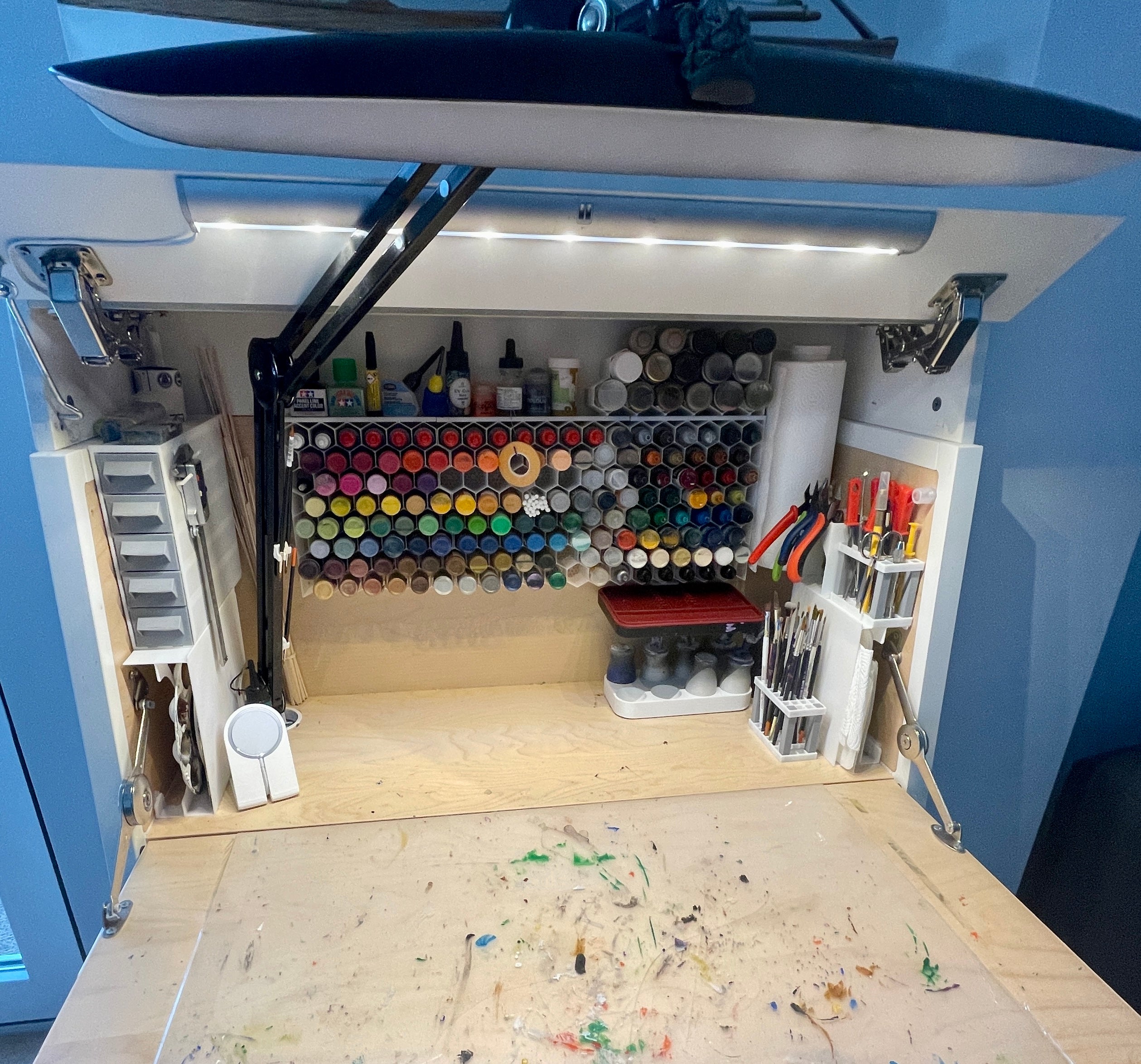 - Schaffen Sie wertvollen Platz auf dem Schreibtisch in Ihrem Hobbybereich.