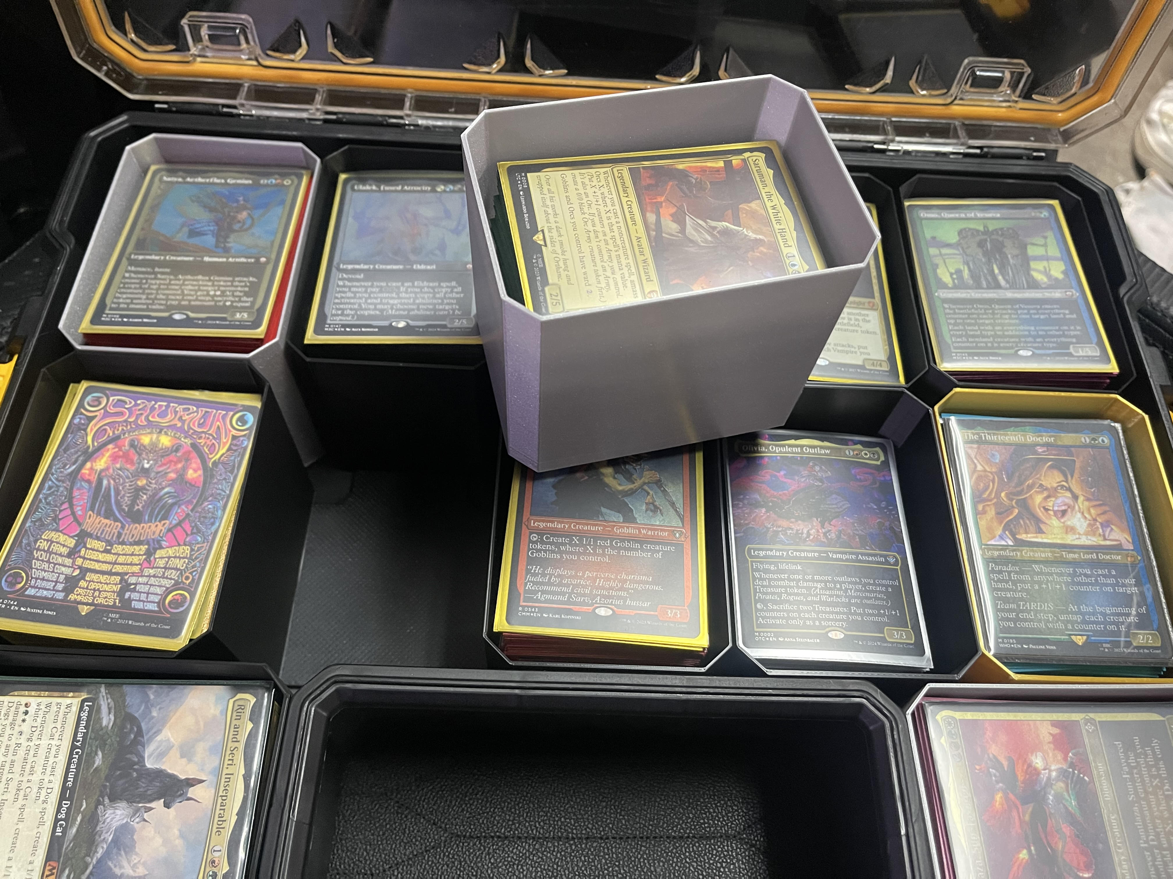 Dieser maßgeschneiderte Einsatz passt perfekt in Ihren vorhandenen Dewalt Deep Pro Organizer und verwandelt ihn in eine optimale Aufbewahrungslösung für Ihre Magic: The Gathering-Karten. Mit diesem Einsatz können Sie Ihre wertvolle Kartensammlung einfach organisieren und schützen. Der Einsatz hilft Ihnen, Ihre Karten sauber getrennt und leicht zugänglich aufzubewahren, egal ob Sie begeisterter Sammler oder aktiver Spieler sind.