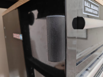 Diese vertikalen Griffe verbessern die Benutzerfreundlichkeit der Yukon Werkzeugschränke mit 12 Schubladen. Sie ermöglichen ein einfaches und effizientes Ein- und Ausschieben in den Schrank, selbst unter einer Werkbank oder in einem engen Raum. Die Griffe minimieren den Platzbedarf und tragen zu einem übersichtlicheren und funktionaleren Arbeitsplatz bei. Ein fester Griff erleichtert den Zugriff auf Werkzeuge und unterstützt einen reibungslosen Arbeitsablauf sowohl in privaten Garagen als auch in professionellen Werkstätten.