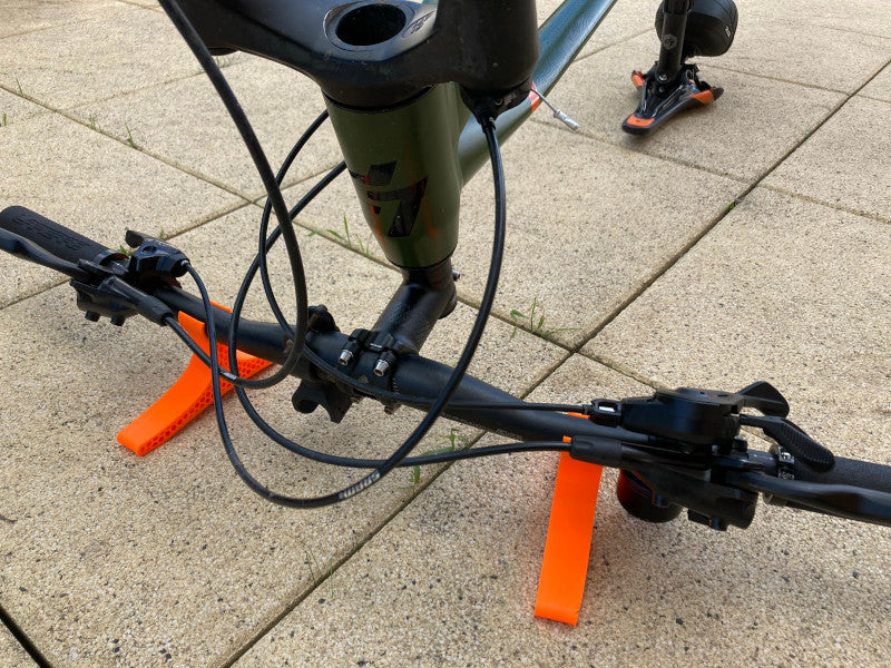 Der Ständer wird am Lenker des Fahrrads montiert und ermöglicht es Ihnen, das Fahrrad einfach umzudrehen, um vollen Zugriff auf alle Komponenten zu erhalten. Er ist mit Lenkern mit einem Durchmesser von 23 mm kompatibel und gewährleistet so eine stabile und sichere Befestigung während der Arbeit.
