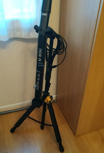 Dieser speziell entwickelte Gitarrenständer bietet eine sichere und zuverlässige Aufbewahrungslösung für Ihr EWI (Electronic Blasinstrument) oder ähnliche Flügelinstrumente. Dank seiner robusten Konstruktion und des sicheren Verriegelungssystems sorgt dieser Ständer dafür, dass Ihr Instrument stabil steht, egal ob Sie zu Hause üben oder auf der Bühne auftreten.