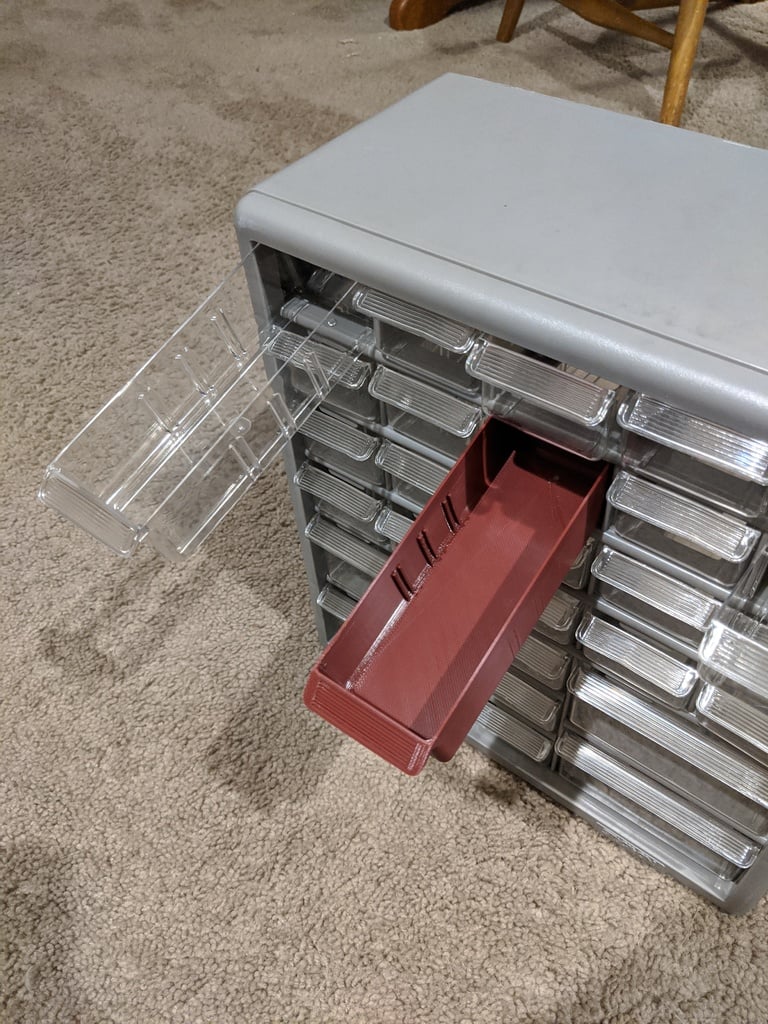 Diese kompakte Schublade ist für die effiziente Organisation Ihrer Kleinteile konzipiert und somit eine unverzichtbare Ergänzung für jeden Arbeitsplatz. Ob Schrauben, Muttern, elektronische Bauteile oder andere Kleinteile – diese Schublade bietet eine praktische Lösung für Ordnung. Dank ihres durchdachten Designs lässt sie sich problemlos in bestehende Aufbewahrungssysteme integrieren, sodass Sie Ihre wichtigsten Teile immer griffbereit haben. Sie trägt dazu bei, Unordnung zu minimieren und sorgt für einen aufgeräumten und funktionalen Arbeitsplatz.