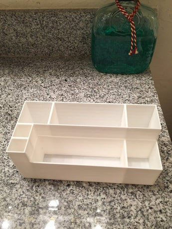 Dieser Organizer optimiert den Platz in Ihrem Medikamentenschrank. Er eignet sich besonders für schmale, wandmontierte Medikamentenschränke, wie sie in vielen Haushalten üblich sind. Dank des umkehrbaren Designs lässt er sich leicht an die rechte oder linke Seite des Schranks anpassen und bietet so Flexibilität bei der Anordnung. So bleiben Medikamente und andere Kleinigkeiten übersichtlich und leicht zugänglich.