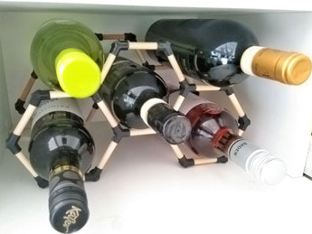 Dieses modulare Weinregal bietet eine clevere und flexible Lösung zur Lagerung von Weinflaschen. Das System besteht aus Verbindungsstücken für 10-mm-Stangen und ermöglicht Ihnen, das Regal genau nach Ihren Bedürfnissen und dem verfügbaren Platz zu gestalten. Jedes Modul ist mit Sechskantverbindungen ausgestattet, die Stabilität und einfache Montage gewährleisten. Mit einem empfohlenen Abstand von 150 mm zwischen den Reihen können Weinflaschen sicher und einfach gelagert werden, egal ob Sie zwei oder drei Reihen wählen, um das Fassungsvermögen zu maximieren. Dieses Weinregal bietet eine übersichtliche und stilvolle Möglichkeit, Ihre Weinsammlung zu präsentieren.