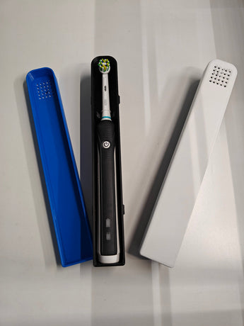Entdecken Sie dieses praktische Reiseetui – ideal zum Schutz Ihrer elektrischen Oral-B Zahnbürste auf Reisen oder zur übersichtlichen Aufbewahrung zu Hause. Das Etui hält Ihre Zahnbürste sicher an ihrem Platz und verfügt über eine einfache Einrastfunktion, die Stabilität gewährleistet und ein Verrutschen verhindert. Der Deckel rastet sicher ein und bietet so robusten Schutz vor äußeren Einflüssen. Bei Bedarf lässt sich die Zahnbürste einfach durch Drücken abnehmen. Die neueste Version des Etuis verfügt über einen verbesserten Boden mit einem schmaleren und flexibleren Halter, der die Passform und Widerstandsfähigkeit gegen tägliche Beanspruchung und mögliche Stöße weiter optimiert.