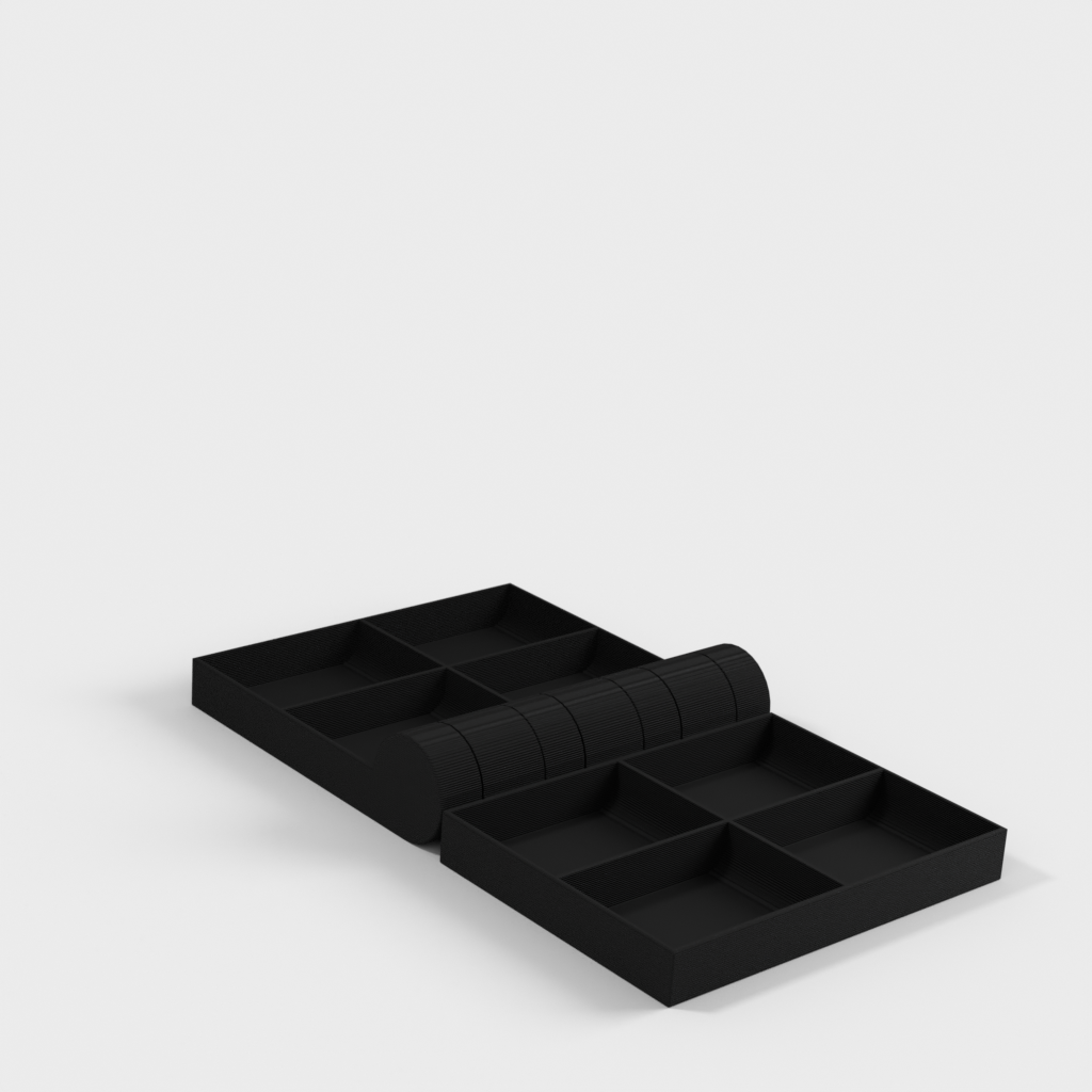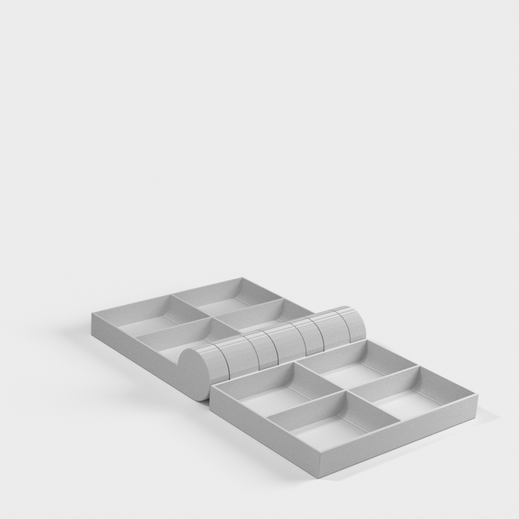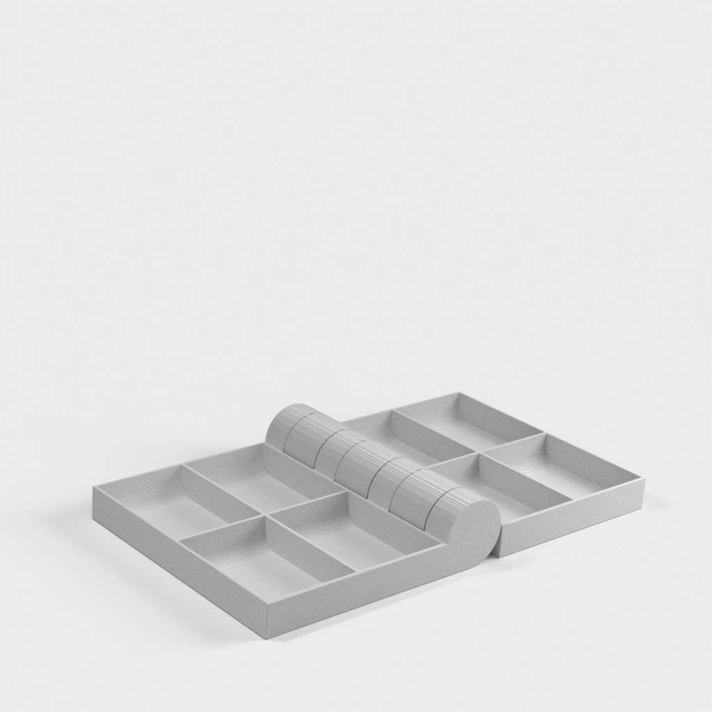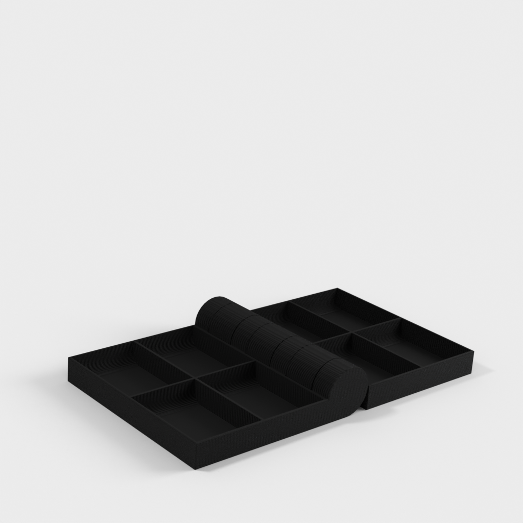 Die Trennschale ist mit einer magnetischen Funktion ausgestattet, die metallische Komponenten sichert und so das Risiko des Wegrollens oder Verlusts verringert. Das zusammenklappbare Design ist ideal für alle mit begrenztem Platzangebot, da es bei Nichtgebrauch einfach verstaut werden kann. Das parametrische Design ermöglicht zudem eine umfassende Anpassung der Abmessungen und Fächer der Schale, sodass sie an die spezifischen Anforderungen verschiedener Projekte angepasst werden kann.