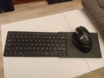 - Das Mauspad kann bei Nichtgebrauch für eine ordentliche Lösung auf der Rückseite der Tastatur verstaut werden.
