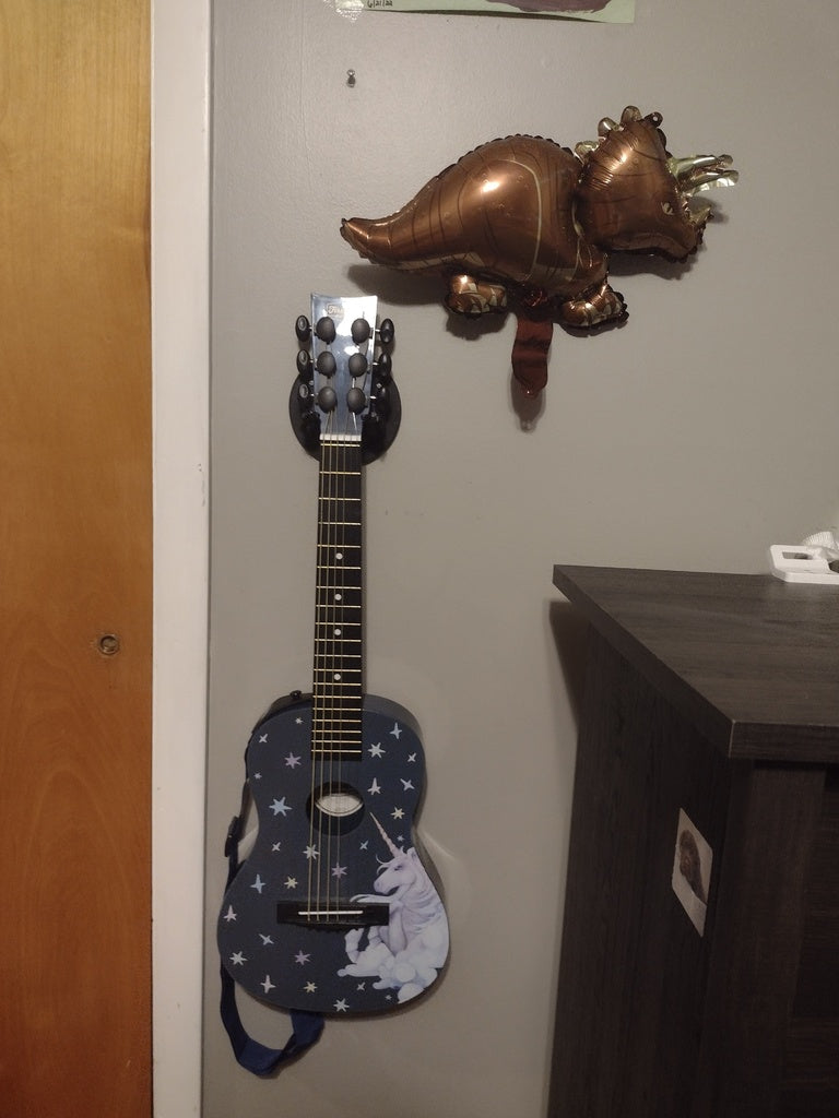 Durch die Verwendung dieser Wandhalterung wird Platz auf dem Boden frei und das Instrument ist bei Bedarf leicht zugänglich. Das robuste Design bietet Platz für eine Vielzahl von Gitarrenhälsen und eignet sich ideal für Musikzimmer, Kinderzimmer oder als dekorative Lösung, die Funktionalität mit einem lustigen Look verbindet.