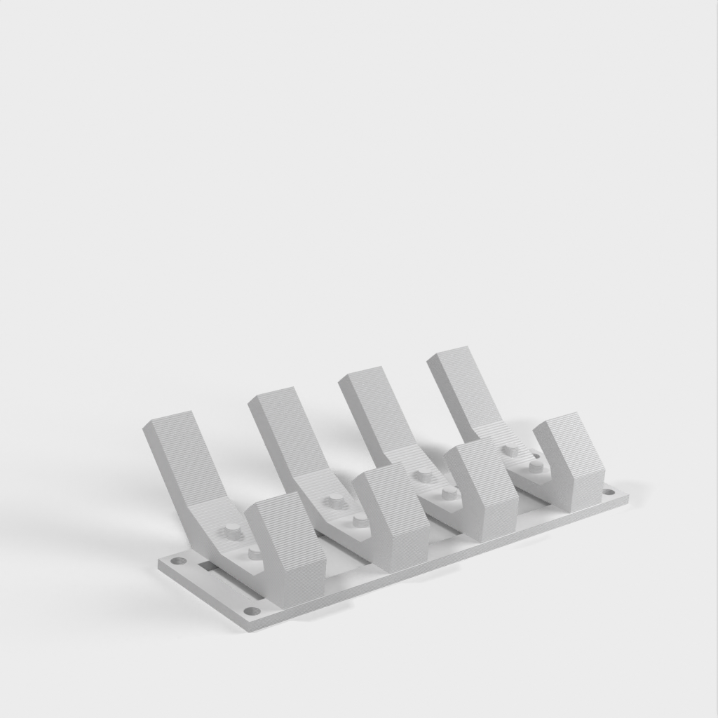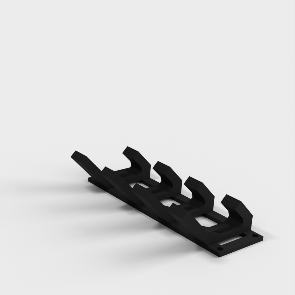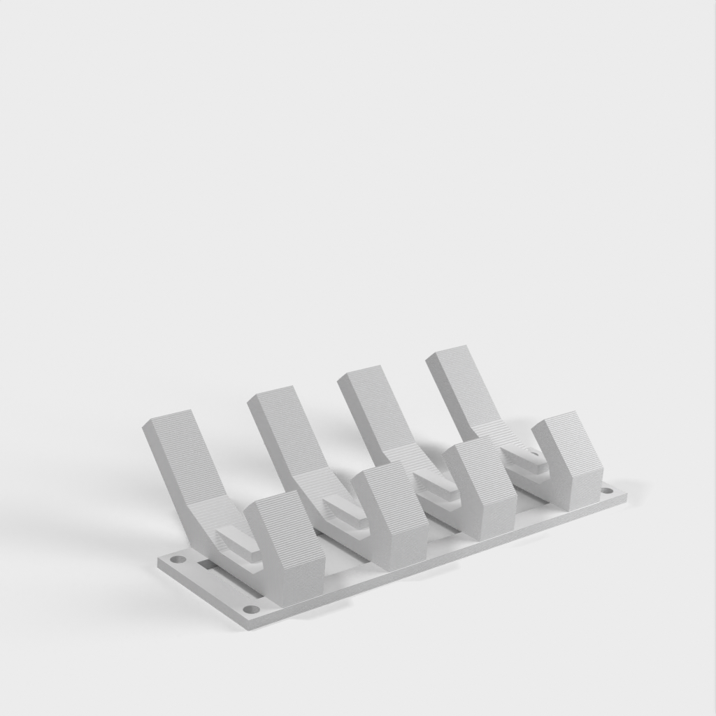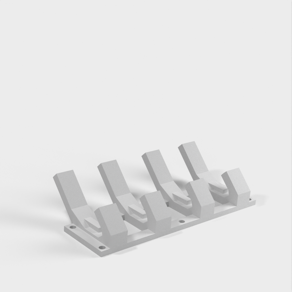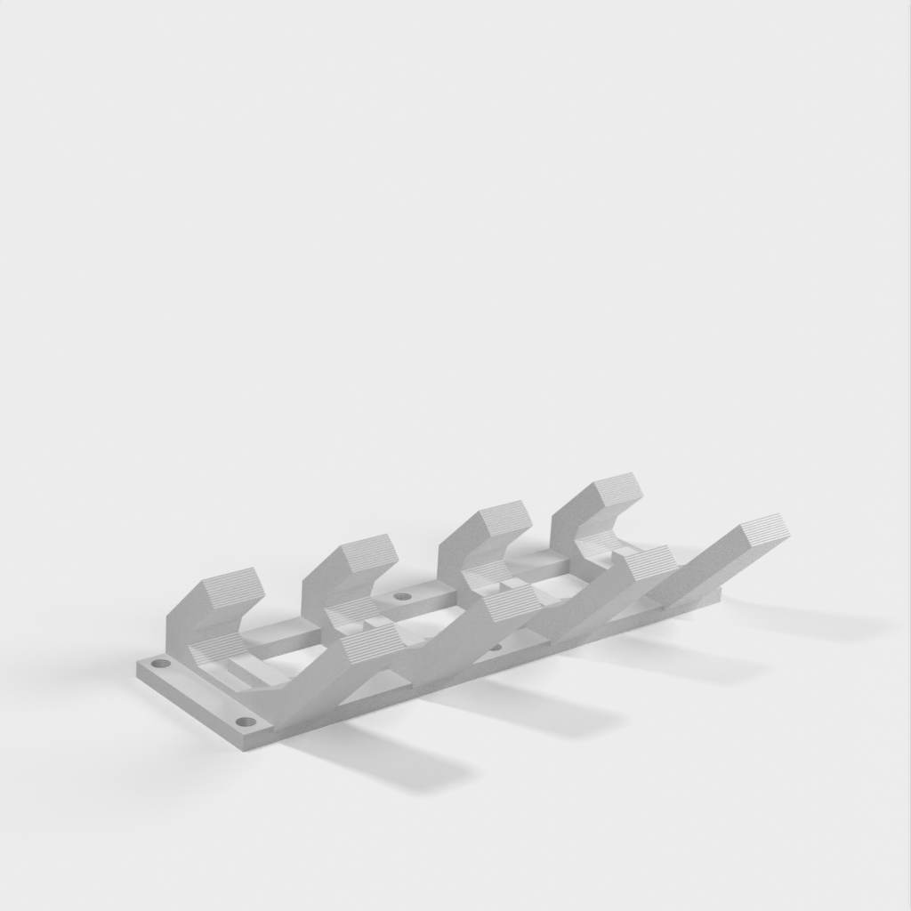 Dies ist eine praktische Kleiderstange mit vier Haken, die in verschiedenen Kontexten verwendet werden kann. Es kann zum Beispiel an der Rückseite einer Tür für Oberbekleidung, an der Wand in einem Eingangsbereich oder an der Innenseite einer Schranktür für Geschirrtücher aufgehängt werden. Jede Rev-Version enthält unterschiedliche Designelemente, um ihre Funktionalität zu maximieren.