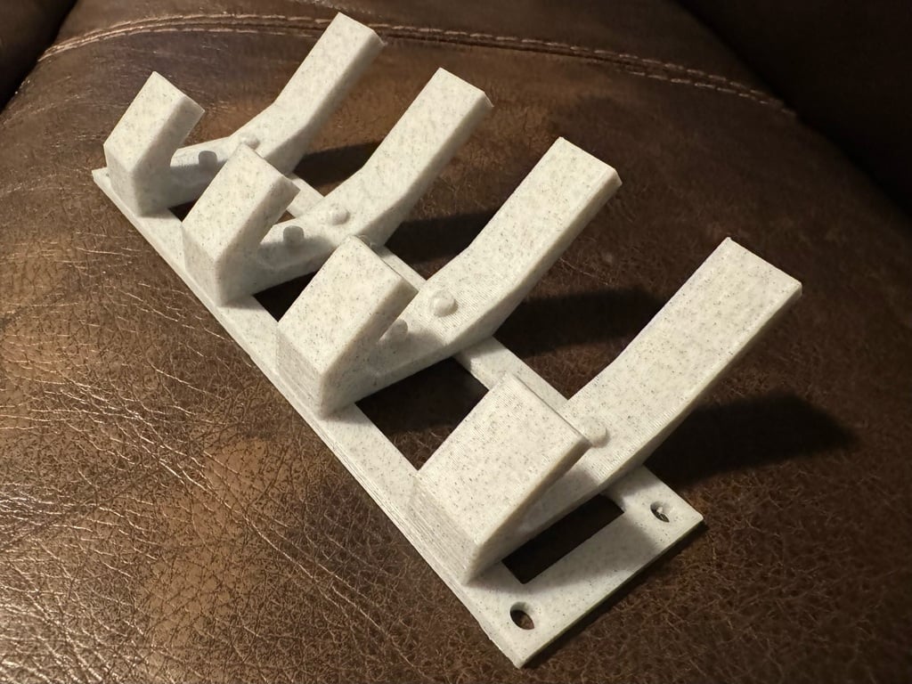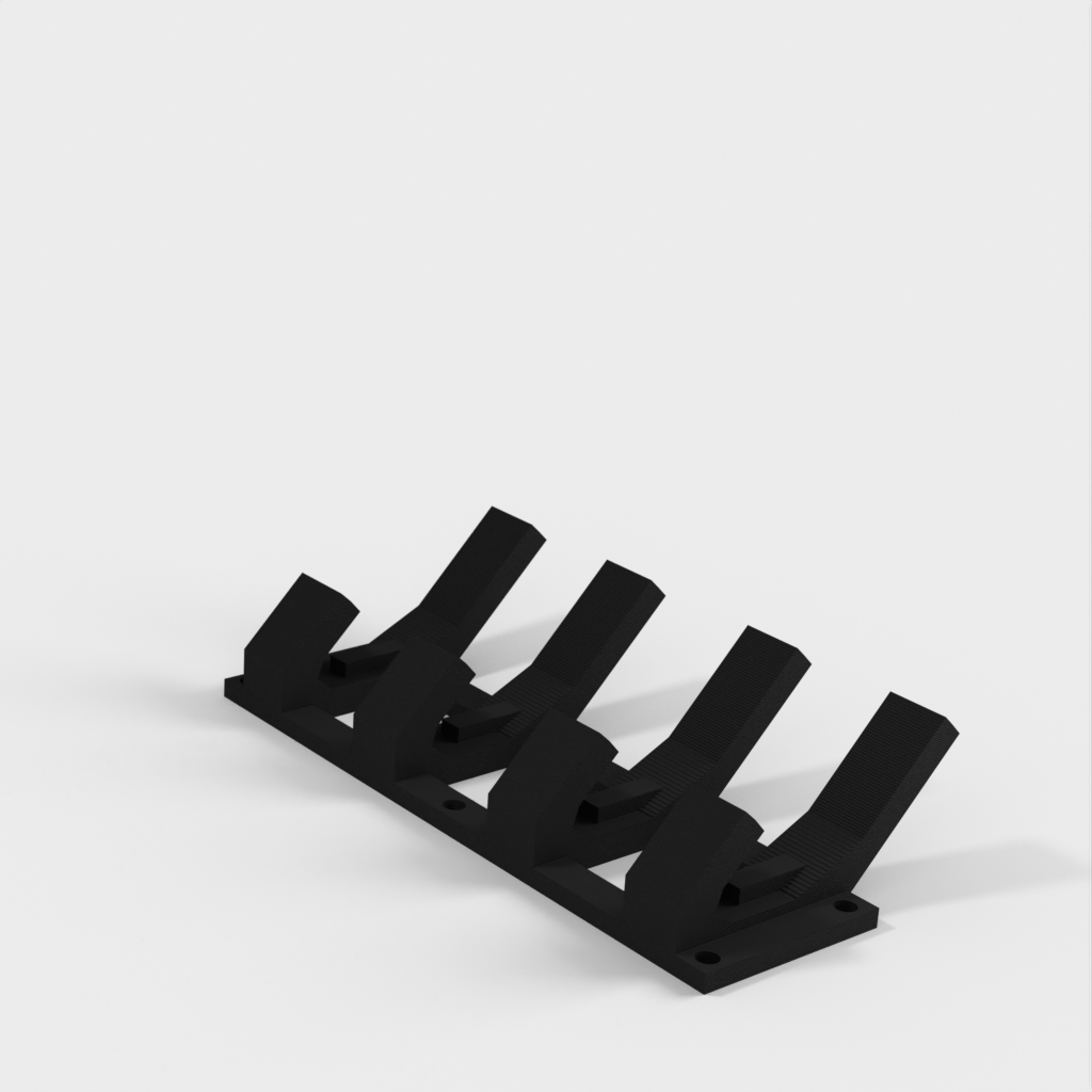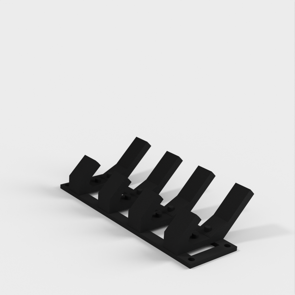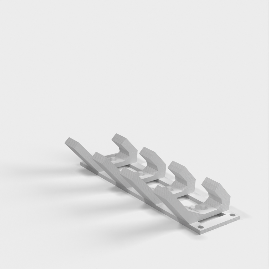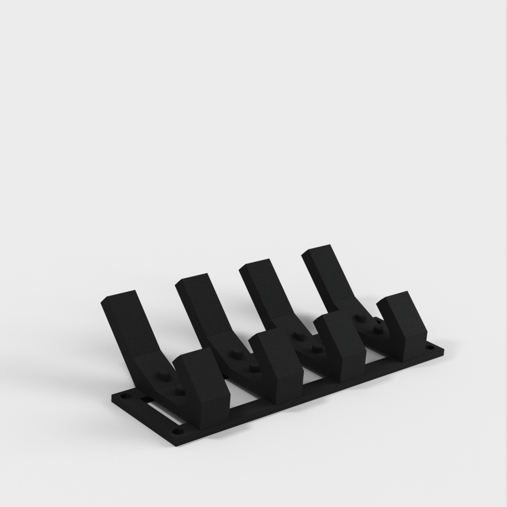 Dies ist eine praktische Kleiderstange mit vier Haken, die in verschiedenen Kontexten verwendet werden kann. Es kann zum Beispiel an der Rückseite einer Tür für Oberbekleidung, an der Wand in einem Eingangsbereich oder an der Innenseite einer Schranktür für Geschirrtücher aufgehängt werden. Jede Rev-Version enthält unterschiedliche Designelemente, um ihre Funktionalität zu maximieren.