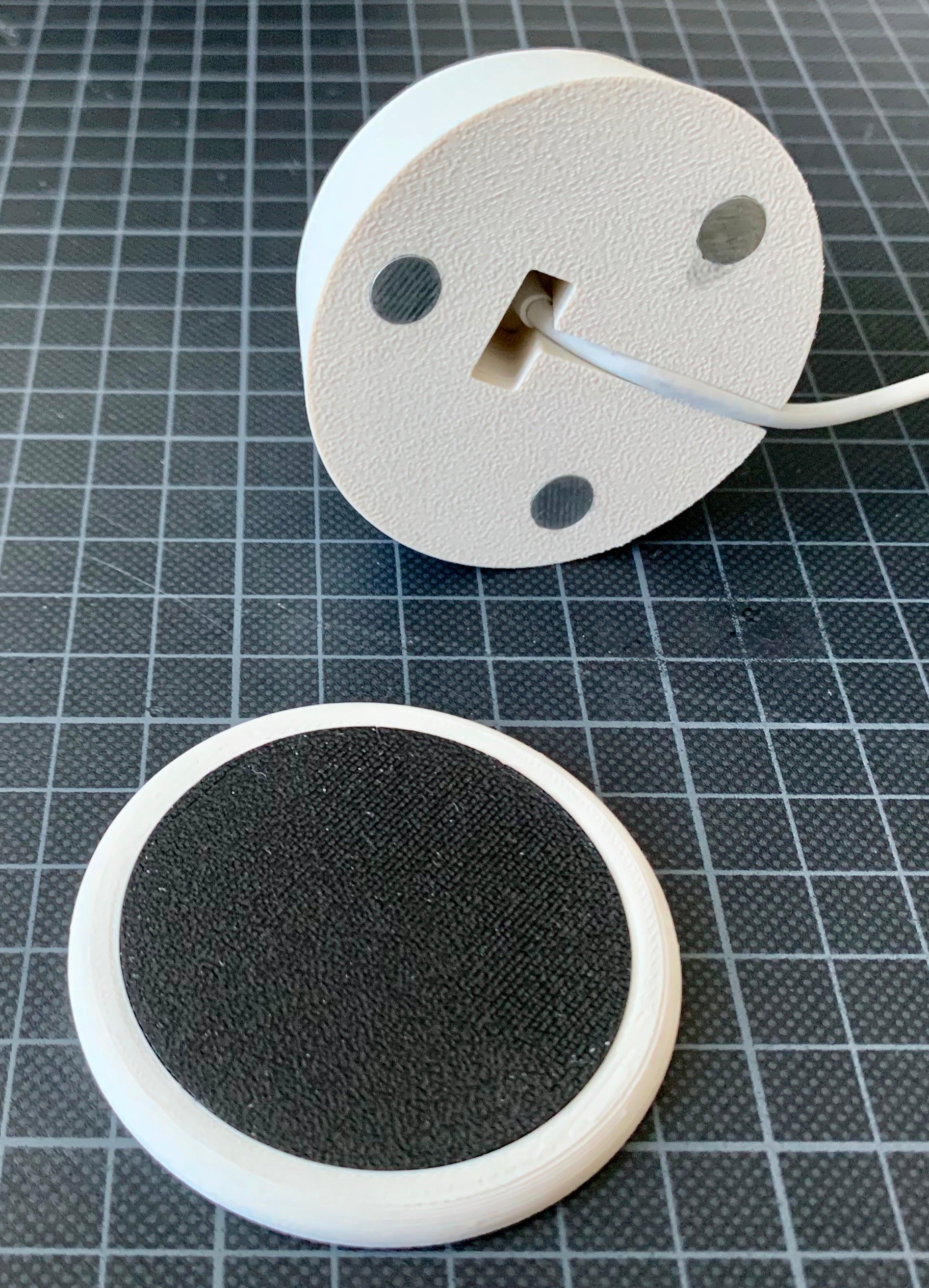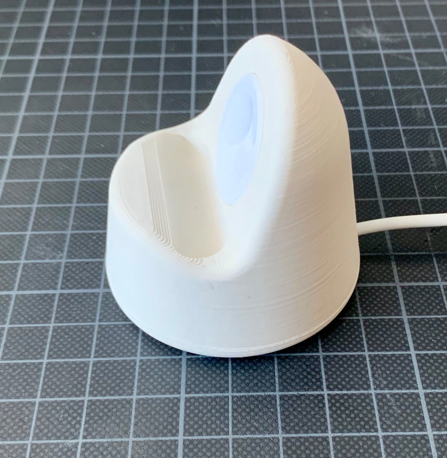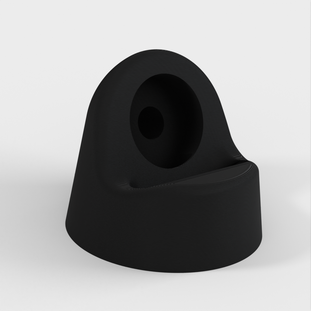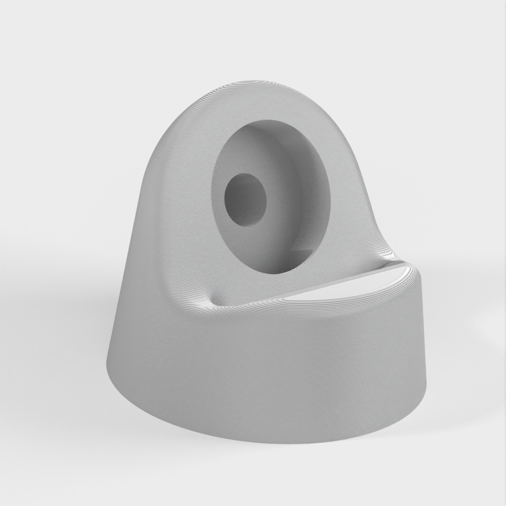 Hierbei handelt es sich um einen Apple Watch-Ständer, der das Ladekabel verbirgt und für ein schlankeres Aussehen sorgt. Der Ständer ist zweigeteilt – oben und unten – und verfügt über eine rutschfeste Unterlage aus flexiblem Filamentmaterial (Ninjaflex, TPU), um ein Verrutschen auf glatten Oberflächen zu verhindern. Die beiden Teile werden mit drei M3 x 6 mm Schrauben zusammengehalten. Eine intelligente Lösung zum Aufladen Ihrer Apple Watch.