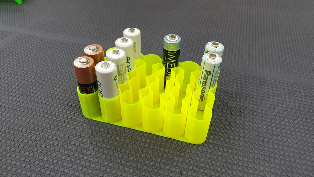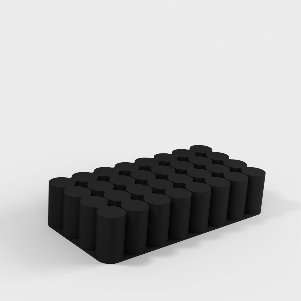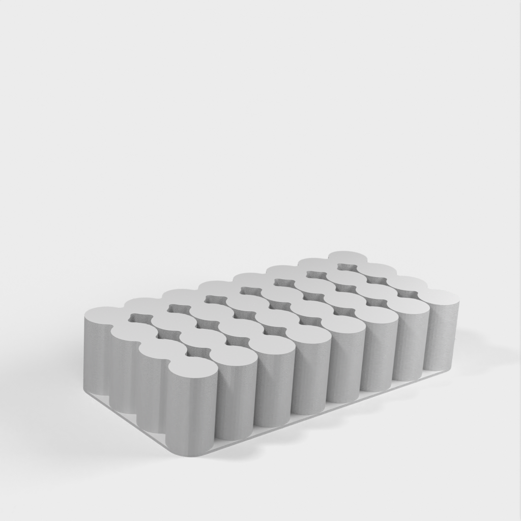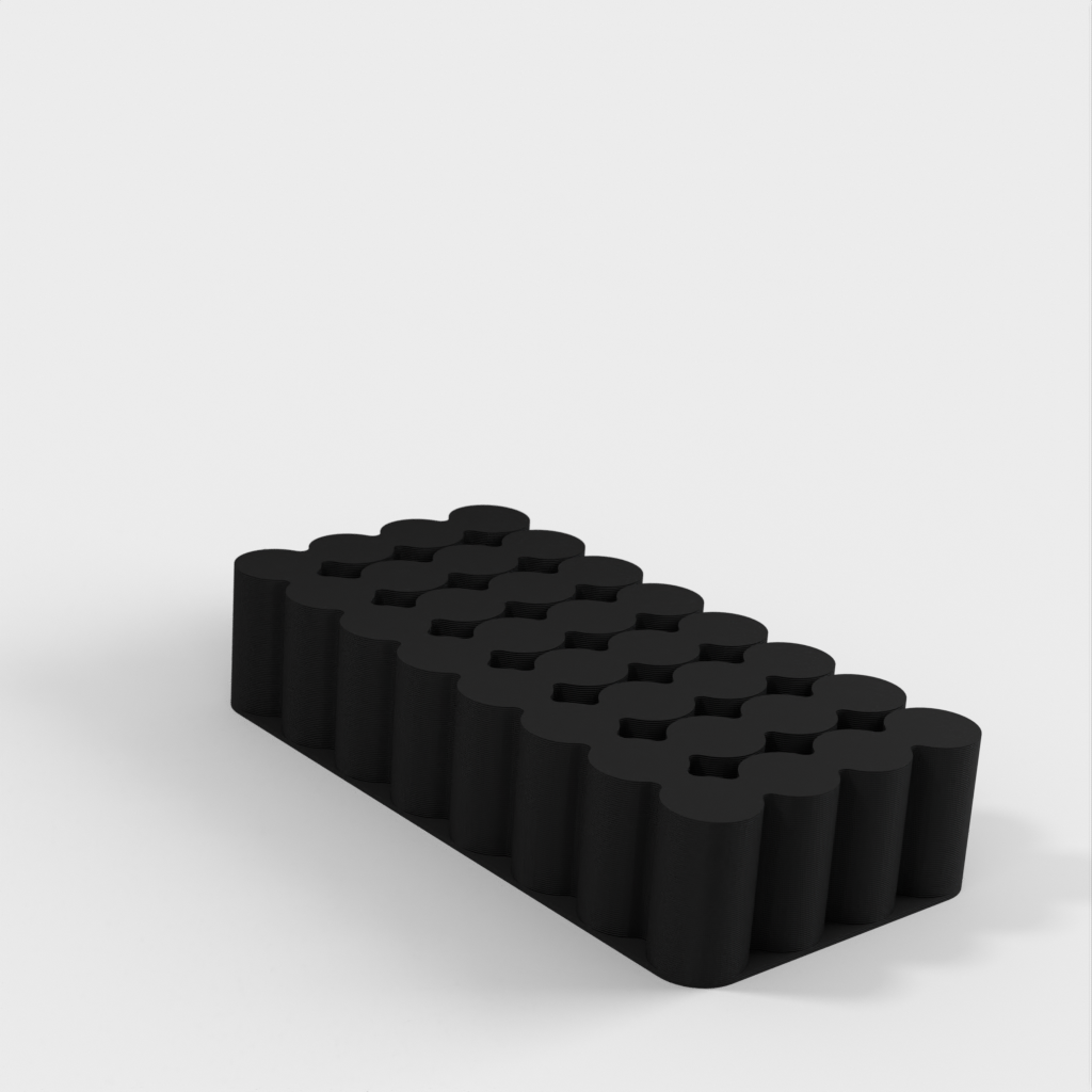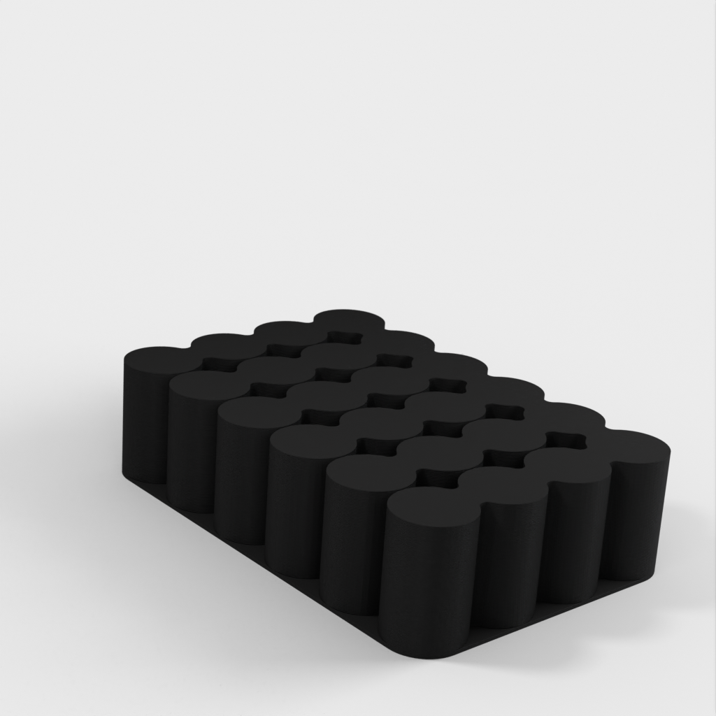 Behalten Sie den Überblick über Ihre Batterien mit diesem Batteriehalter für AA-, AAA-, 18650- und 9-V-Batterien. Der AA-Behälter fasst 24 Batterien, AAA für 32, 18650 für 24 und 9 V für 10. Sie können sie aus jedem Material drucken, in diesem Fall jedoch aus PLA. Sollten Sie einen Halter für unterschiedlich große Batterien oder mit mehr Steckplätzen benötigen, hinterlassen Sie bitte einen Kommentar und eine neue Version wird hochgeladen.
