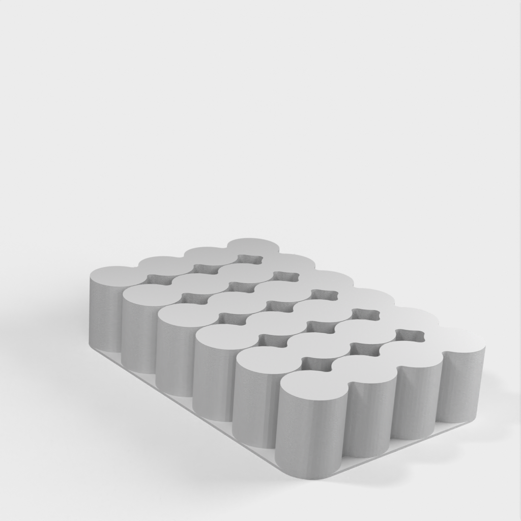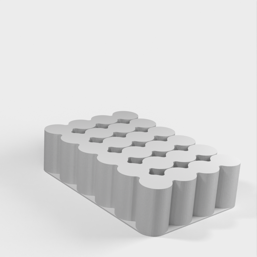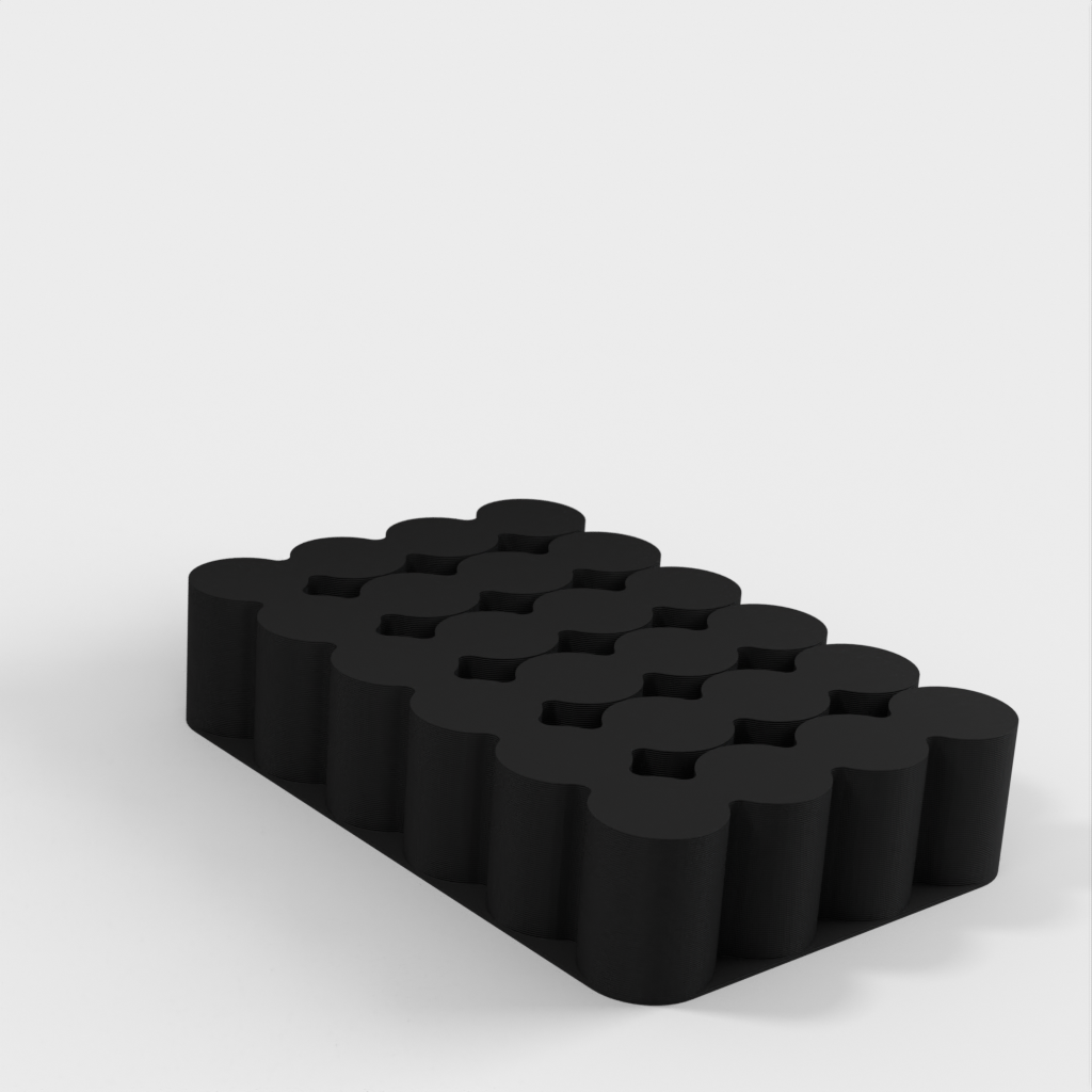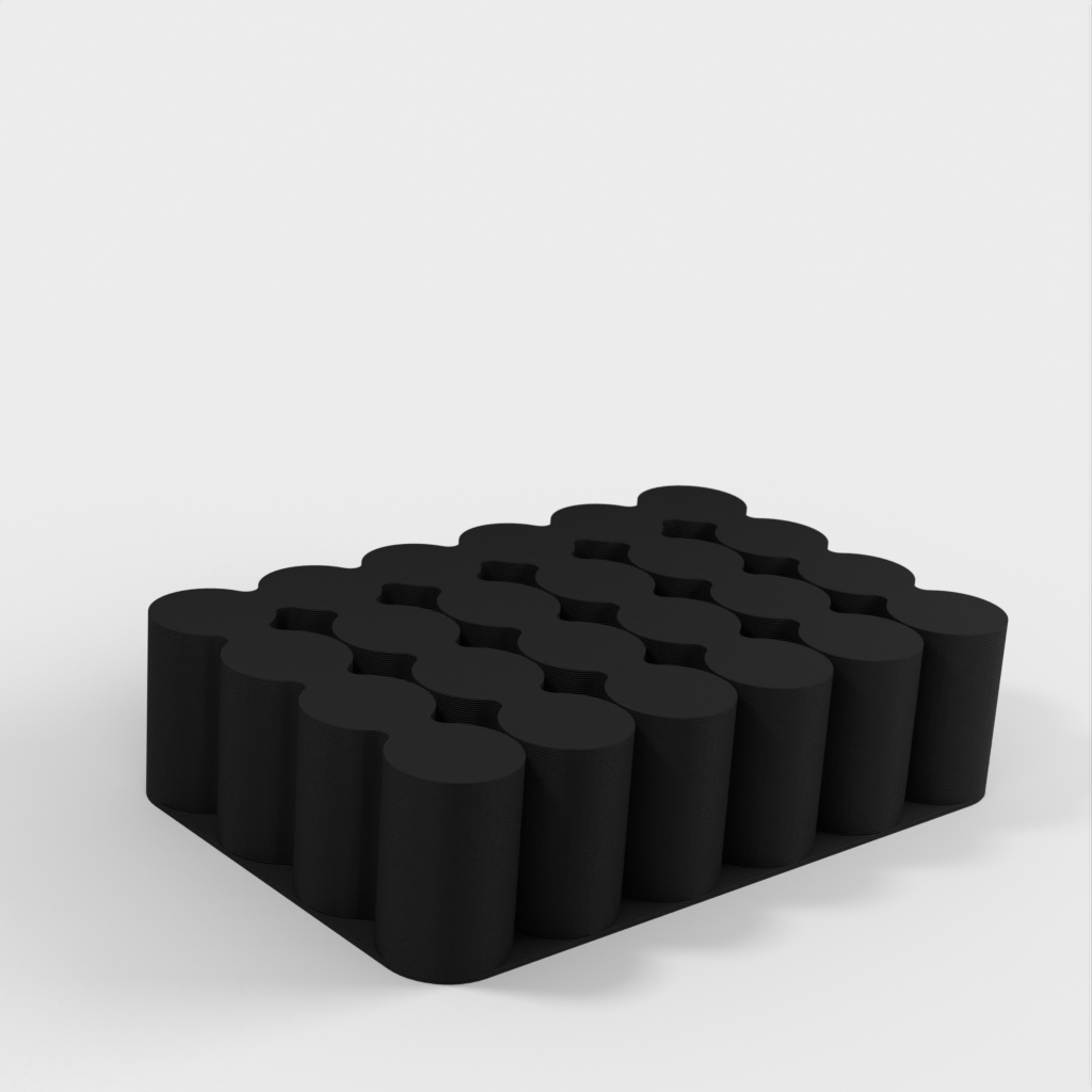 Behalten Sie den Überblick über Ihre Batterien mit diesem Batteriehalter für AA-, AAA-, 18650- und 9-V-Batterien. Der AA-Behälter fasst 24 Batterien, AAA für 32, 18650 für 24 und 9 V für 10. Sie können sie aus jedem Material drucken, in diesem Fall jedoch aus PLA. Sollten Sie einen Halter für unterschiedlich große Batterien oder mit mehr Steckplätzen benötigen, hinterlassen Sie bitte einen Kommentar und eine neue Version wird hochgeladen.