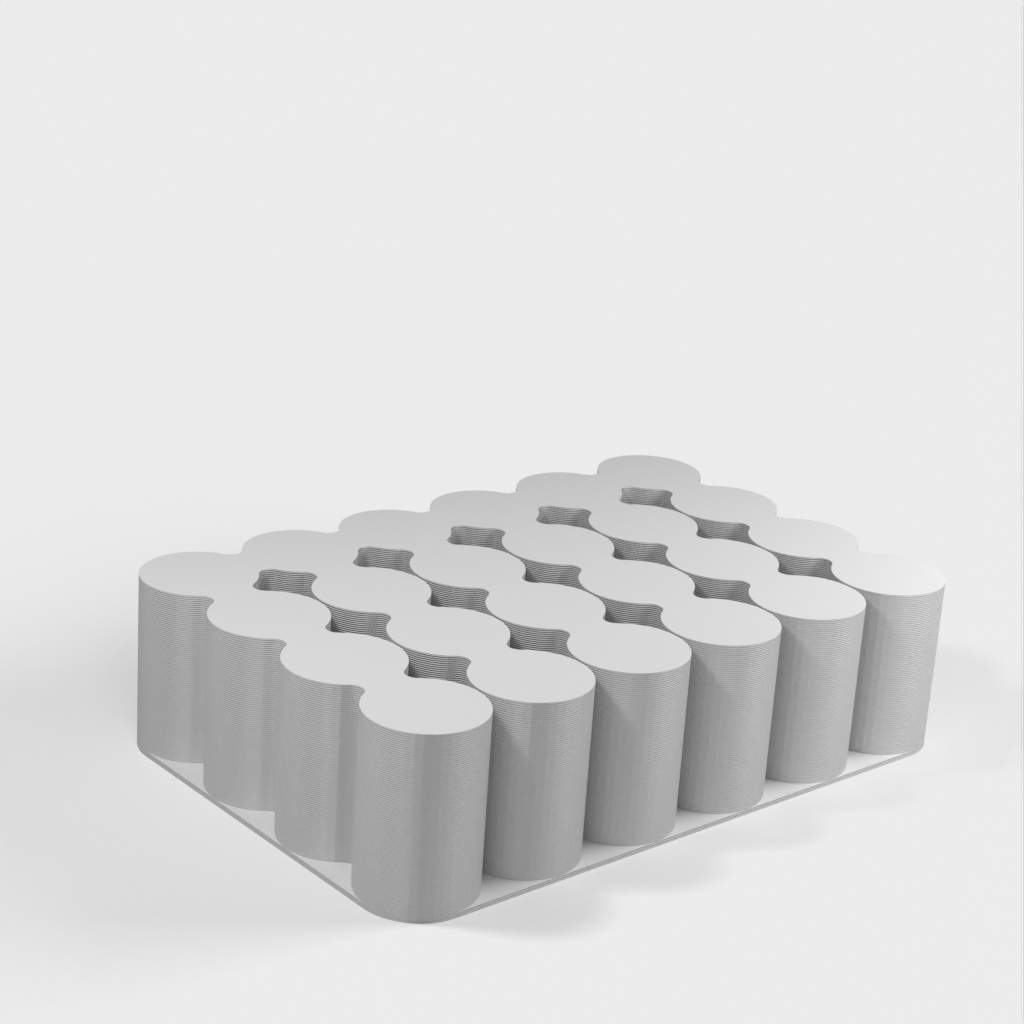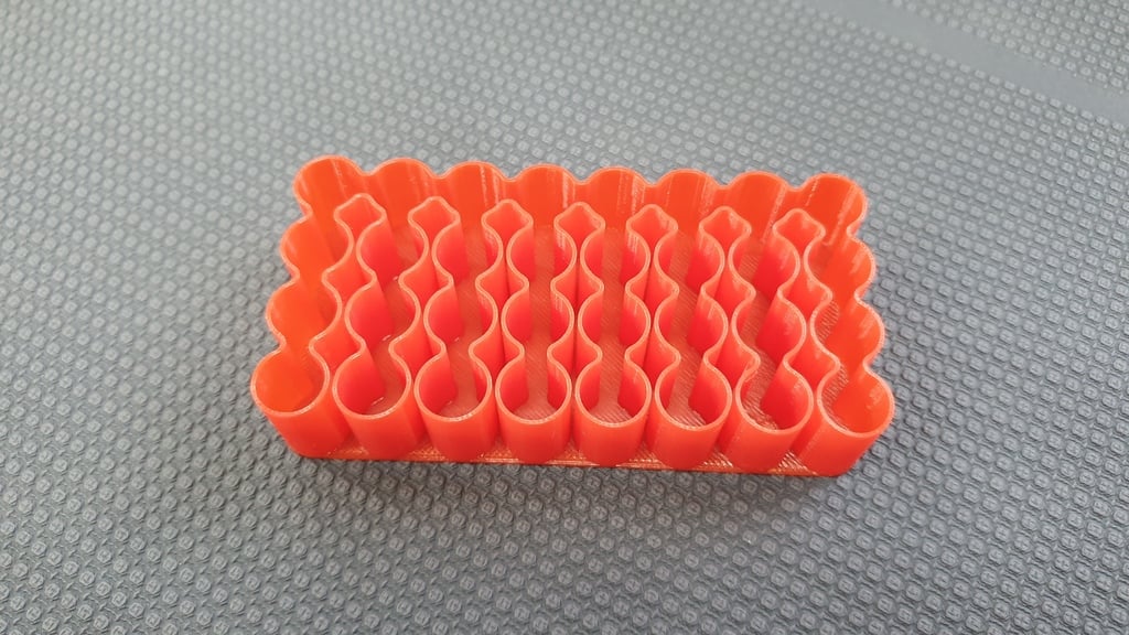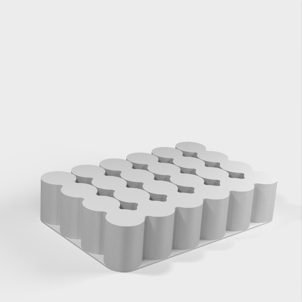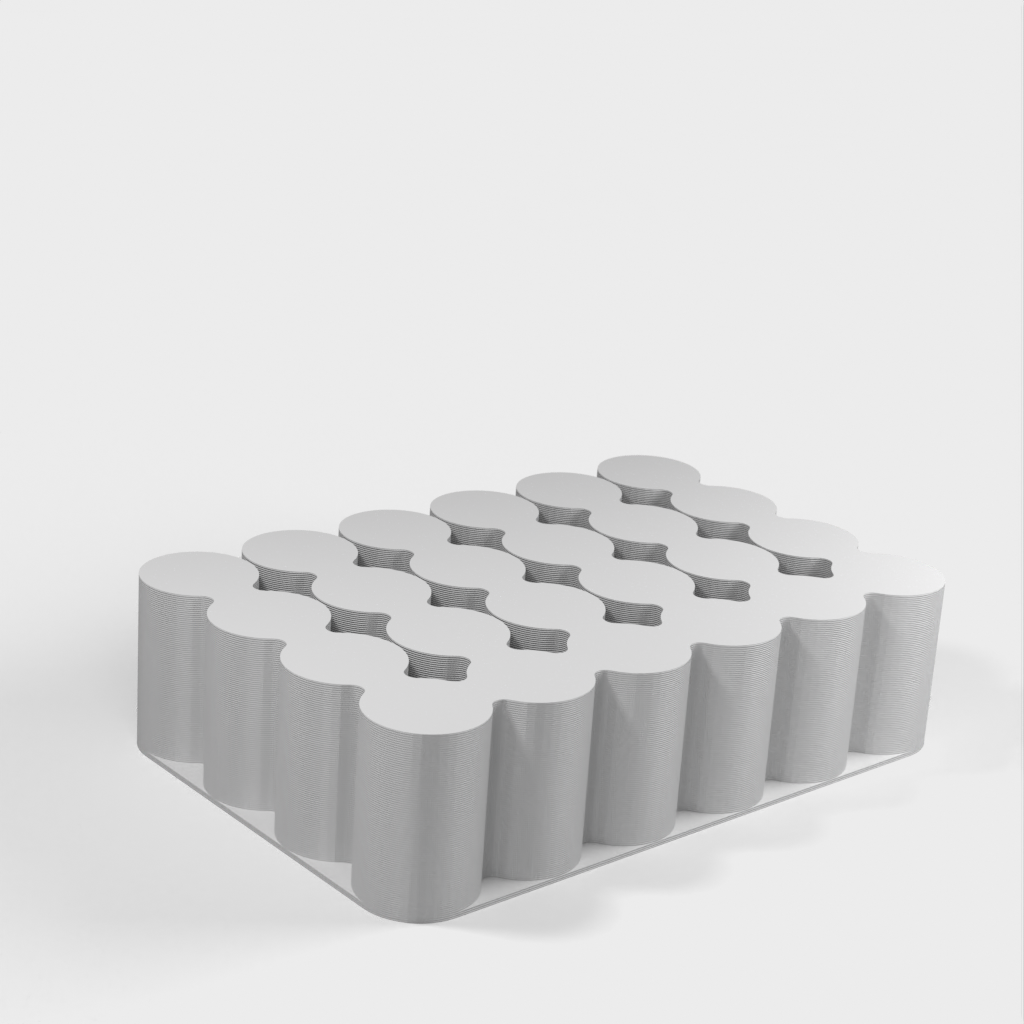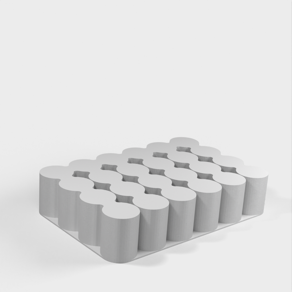Behalten Sie den Überblick über Ihre Batterien mit diesem Batteriehalter für AA-, AAA-, 18650- und 9-V-Batterien. Der AA-Behälter fasst 24 Batterien, AAA für 32, 18650 für 24 und 9 V für 10. Sie können sie aus jedem Material drucken, in diesem Fall jedoch aus PLA. Sollten Sie einen Halter für unterschiedlich große Batterien oder mit mehr Steckplätzen benötigen, hinterlassen Sie bitte einen Kommentar und eine neue Version wird hochgeladen.