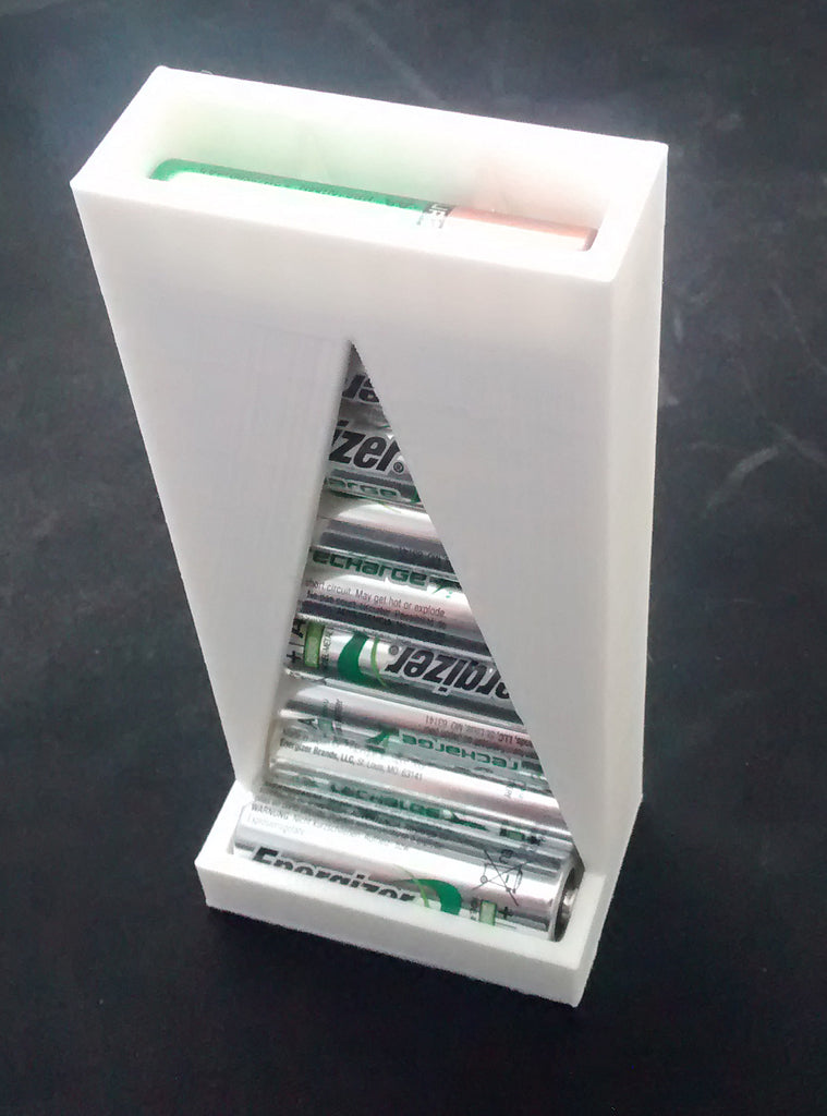 Ein äußerst praktischer Halter für AA-Batterien. Mit den integrierten Befestigungslöchern lässt sich der Batteriehalter ganz einfach dort installieren, wo es Ihnen passt. Der Batteriehalter benötigt während des Druckvorgangs keine Stützkonstruktion.