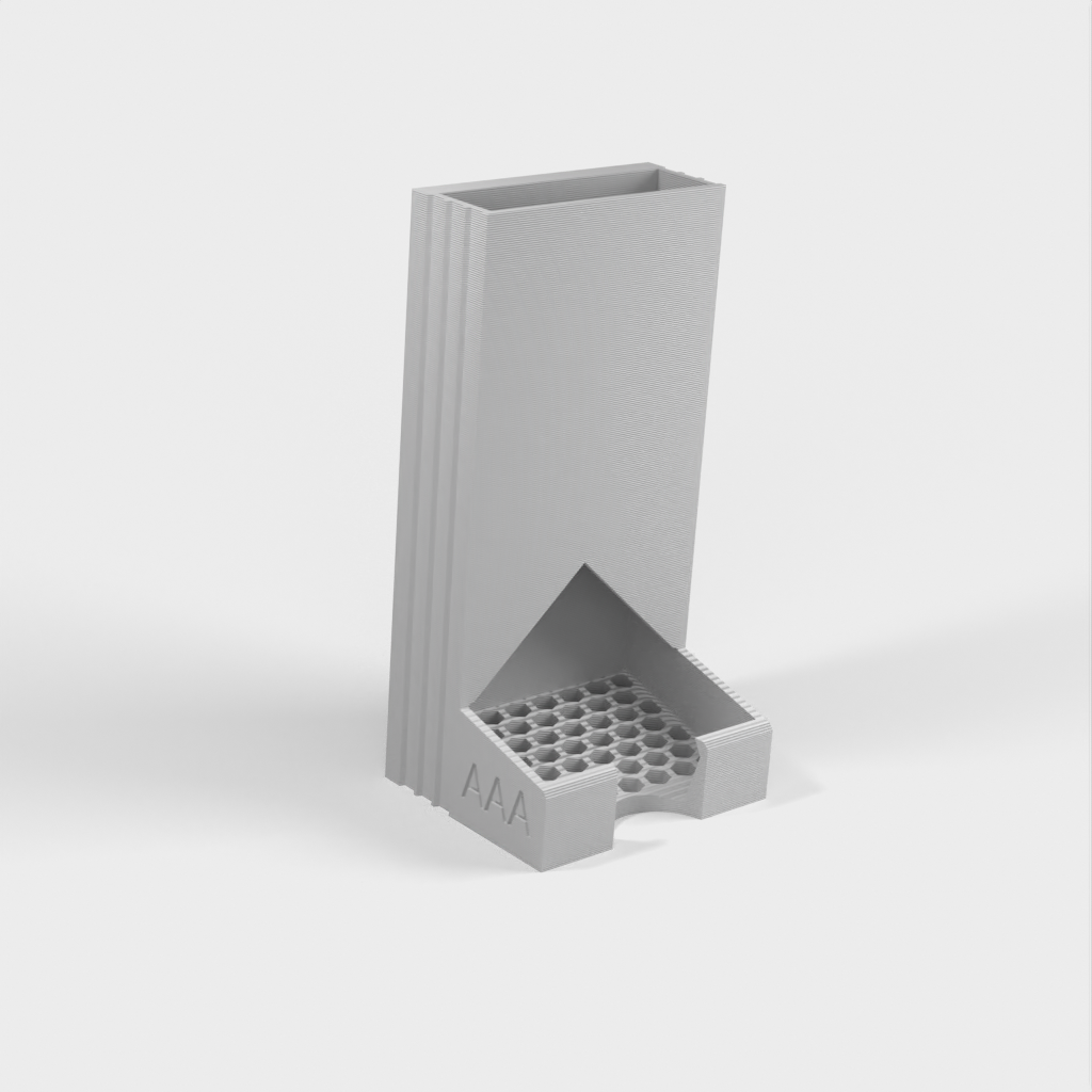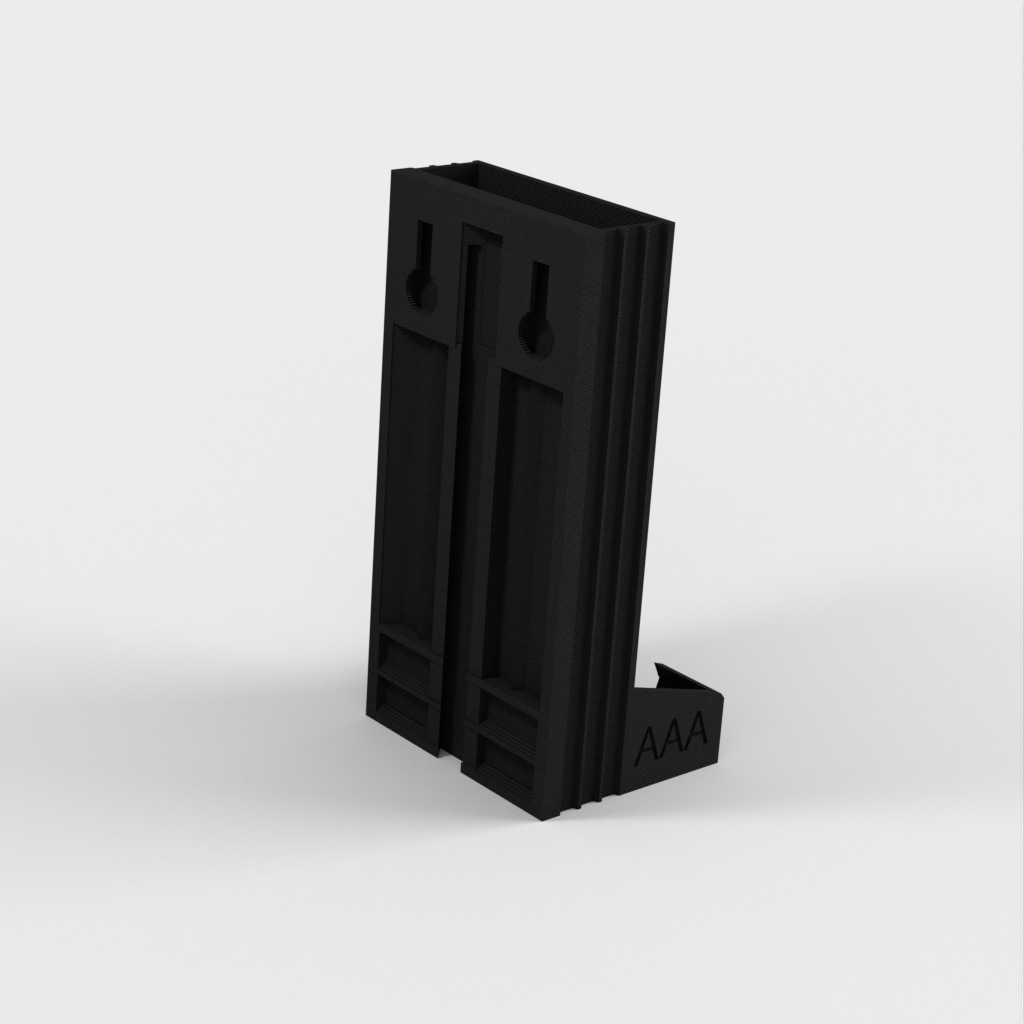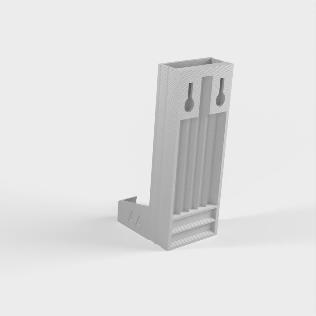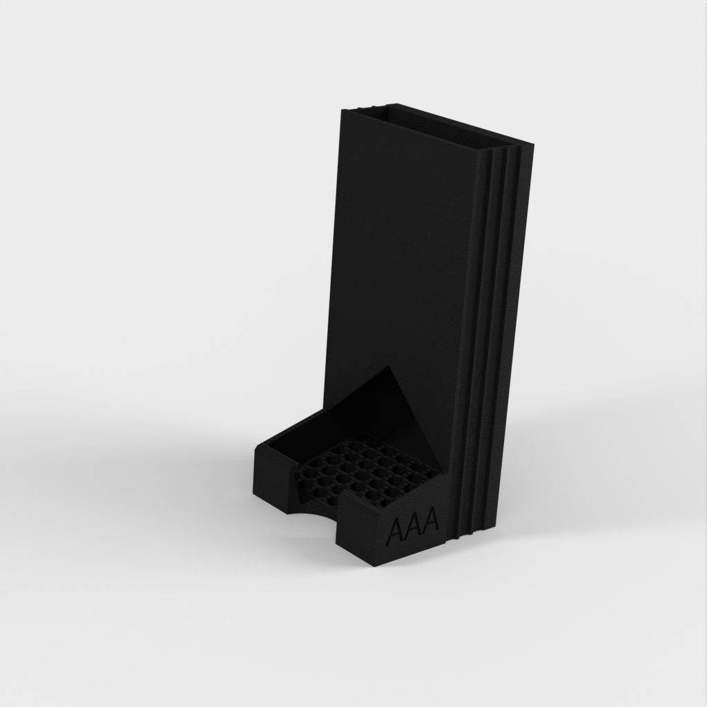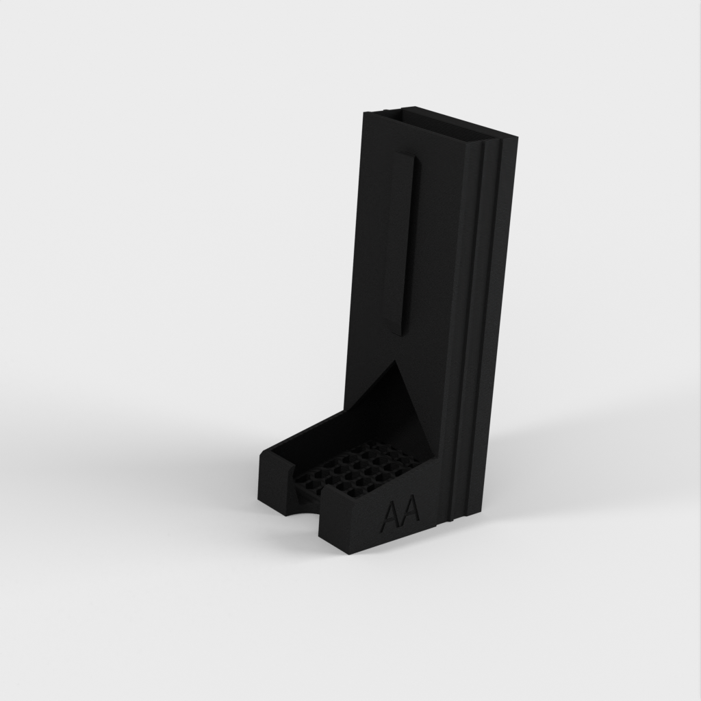 Batteriehalter für AA- und AAA-Batterien. Halterungen sind montierbar und eine Wandhalterung ist erhältlich. Es ist ein praktisches und geräumiges System zur Aufbewahrung Ihrer Batterien und sorgt für Ordnung und Ordnung in Ihrem Bereich.