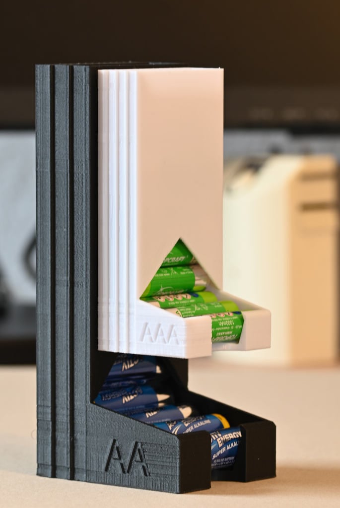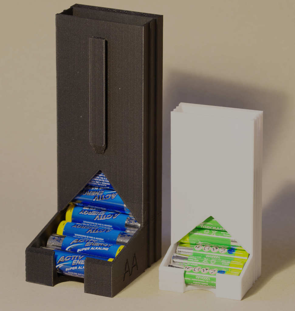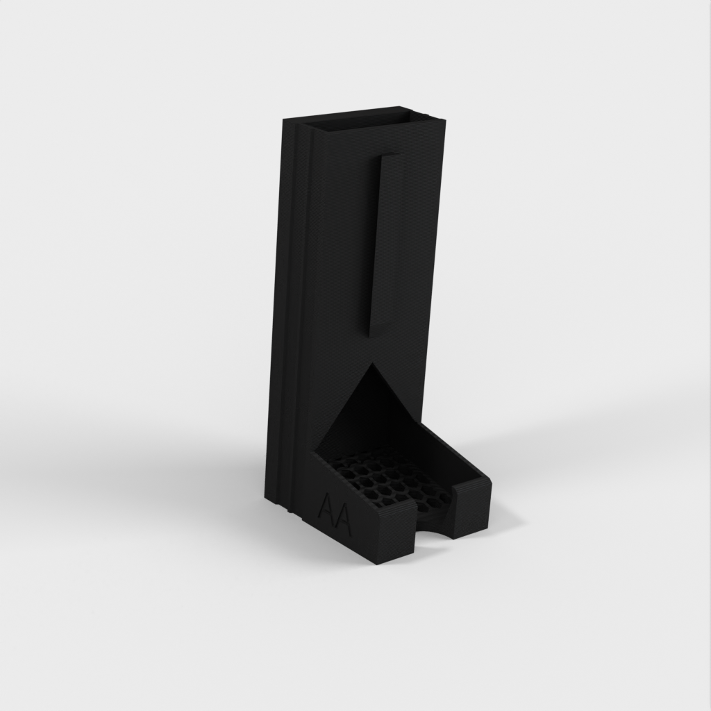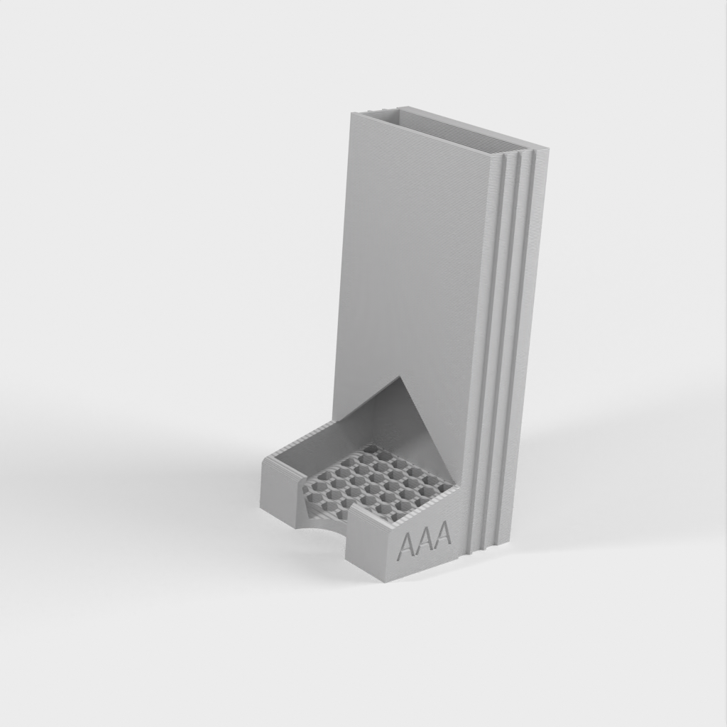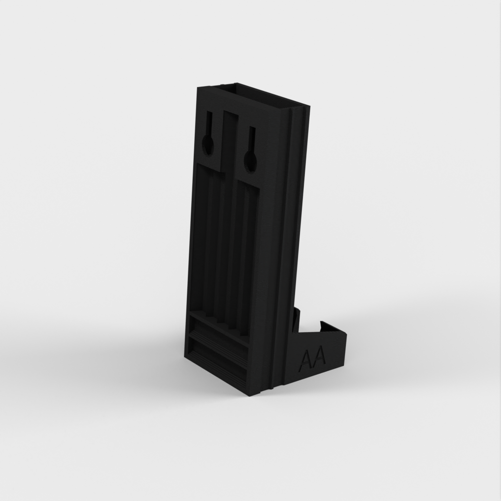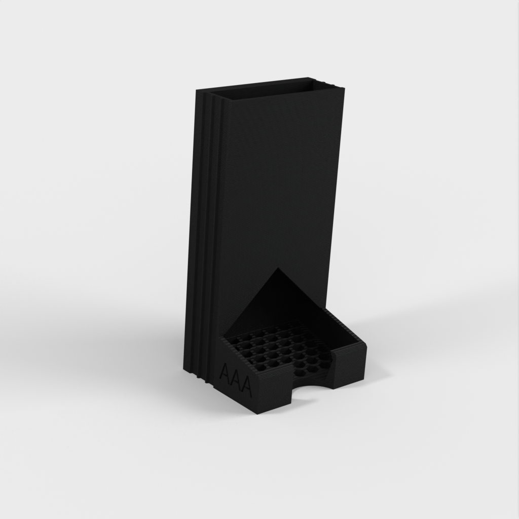 Batteriehalter für AA- und AAA-Batterien. Halterungen sind montierbar und eine Wandhalterung ist erhältlich. Es ist ein praktisches und geräumiges System zur Aufbewahrung Ihrer Batterien und sorgt für Ordnung und Ordnung in Ihrem Bereich.