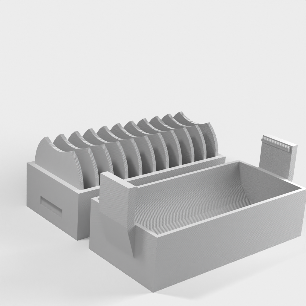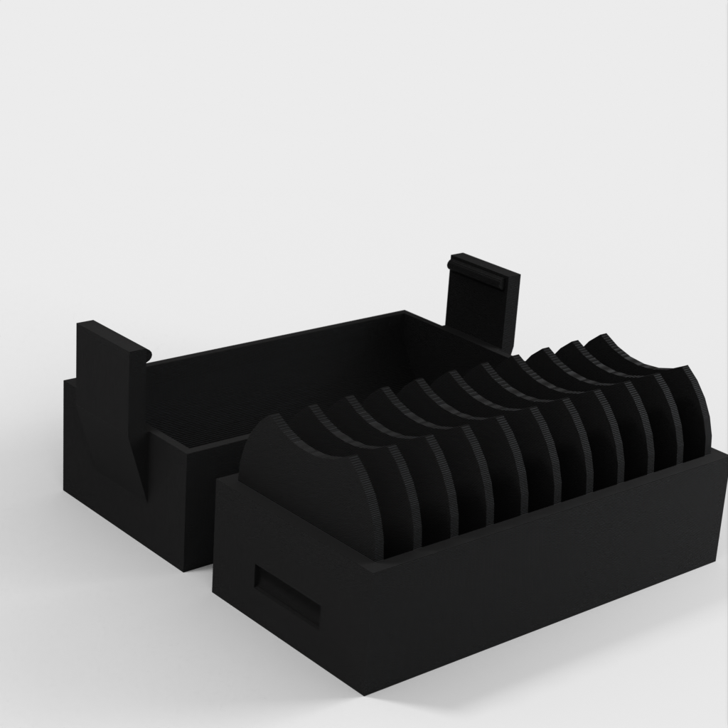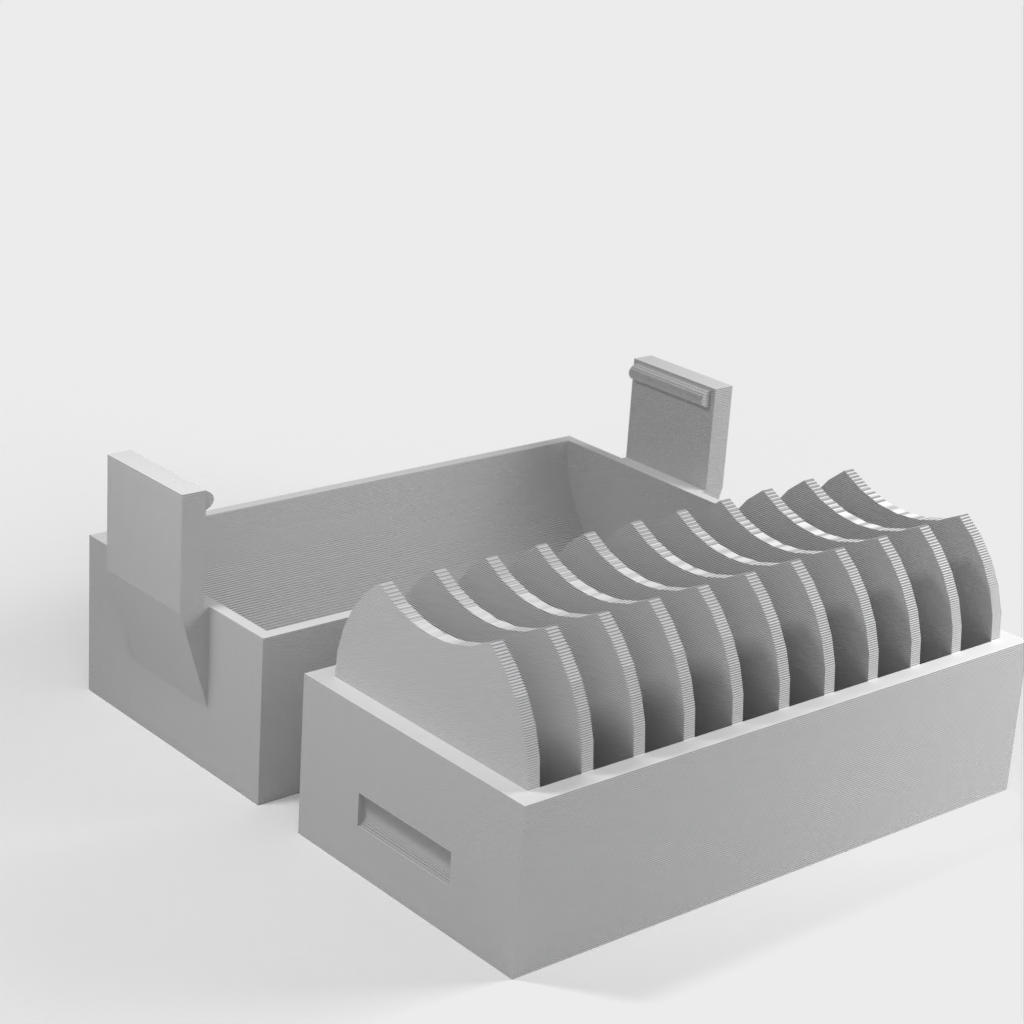 Ein kleiner Halter für 10 Stück. CR2032-Knopfbatterien. Es wurde eine neue Version mit einer Abdeckung hinzugefügt, die ein einfacheres Einsetzen und Entfernen der Batterien ermöglicht. Der Deckel verfügt über einen Clip, der die Batterien an Ort und Stelle hält, falls er umfällt.