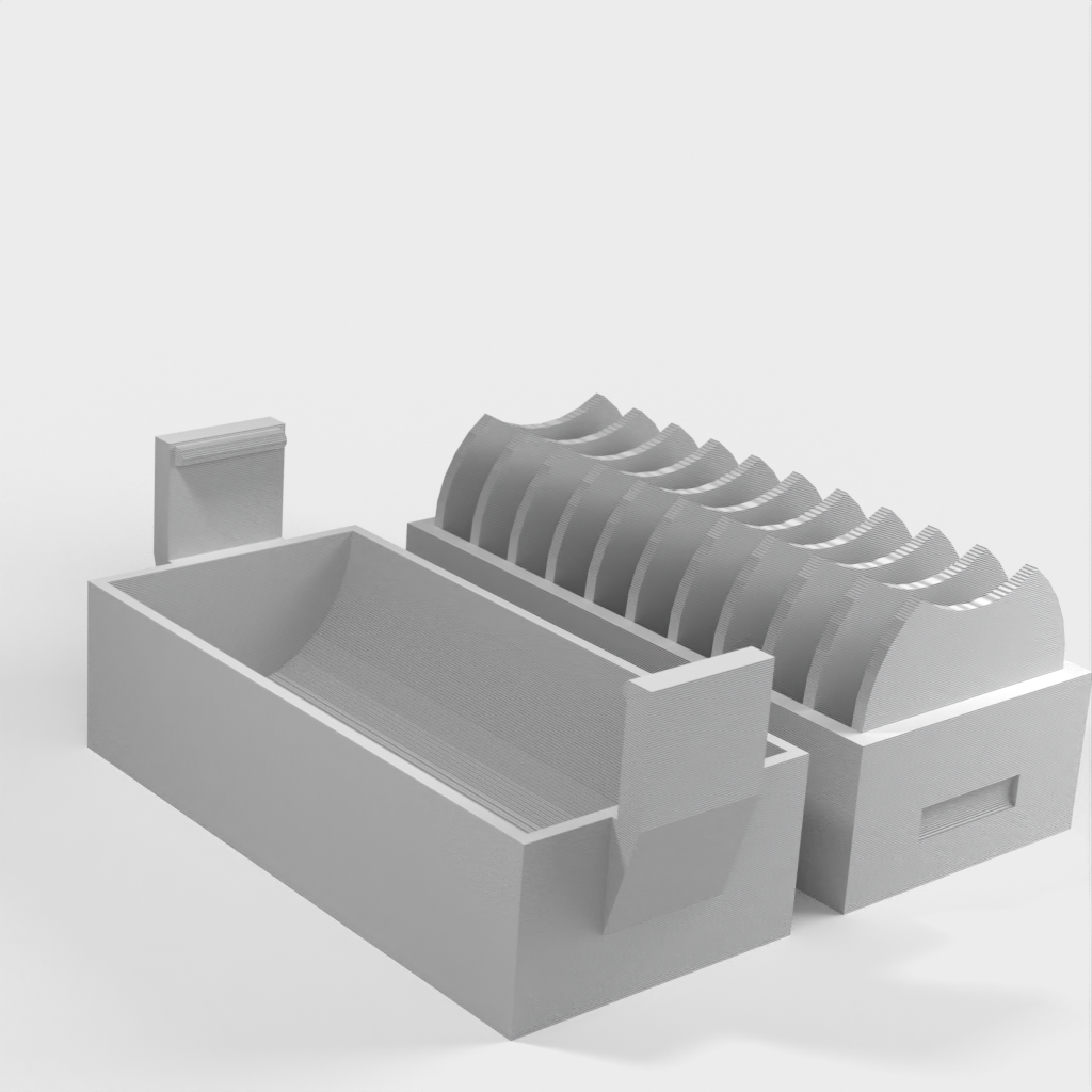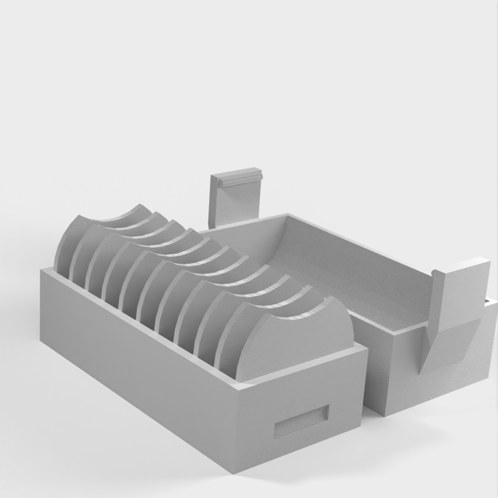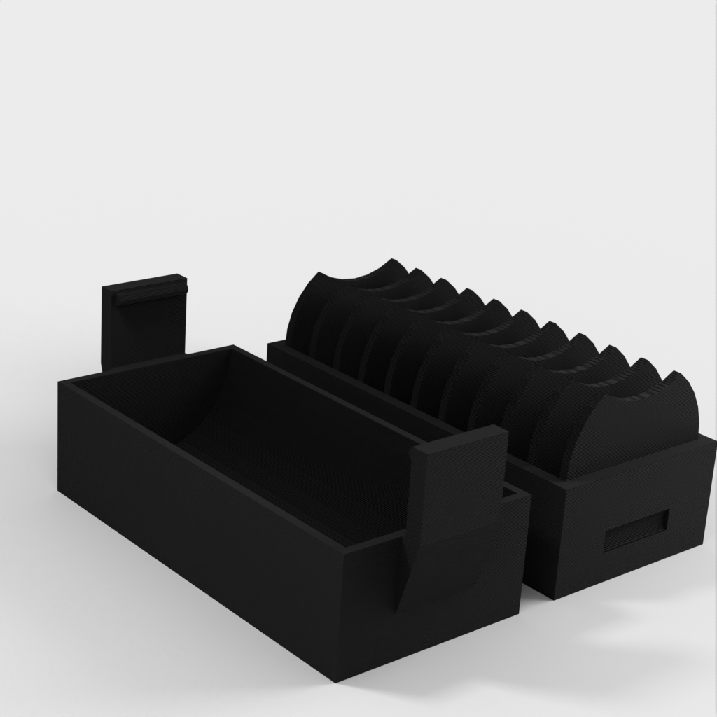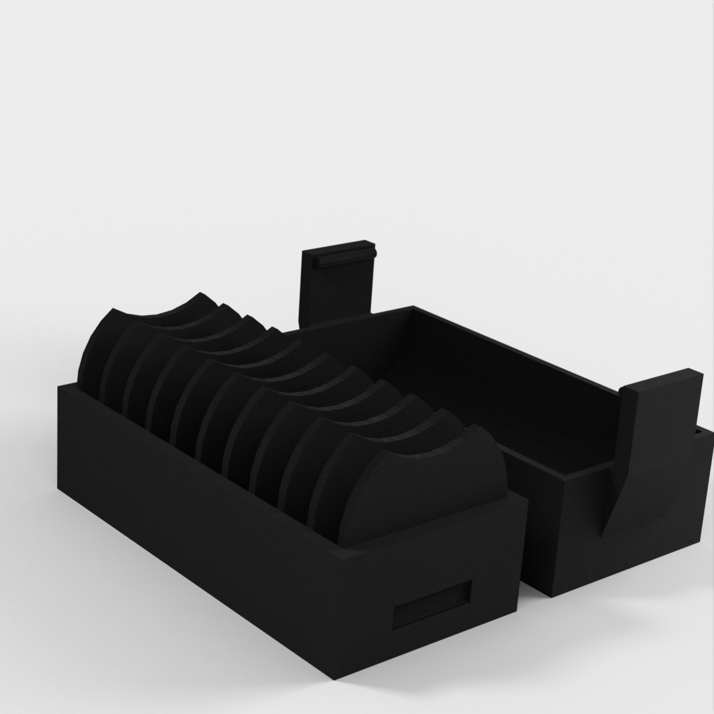 Ein kleiner Halter für 10 Stück. CR2032-Knopfbatterien. Es wurde eine neue Version mit einer Abdeckung hinzugefügt, die ein einfacheres Einsetzen und Entfernen der Batterien ermöglicht. Der Deckel verfügt über einen Clip, der die Batterien an Ort und Stelle hält, falls er umfällt.