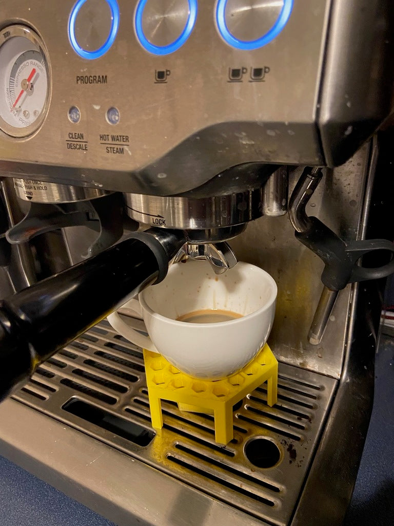 Wir präsentieren den Espresso-Tassenhalter – ein praktisches Accessoire für ein noch besseres Kaffeeerlebnis. Dieser Tassenhalter positioniert Ihre Espressotasse während der Extraktion näher am Auslauf der Espressomaschine. Dies trägt zur optimalen Crema-Bildung und zur vollen Entfaltung von Geschmack und Aroma des Kaffees bei.