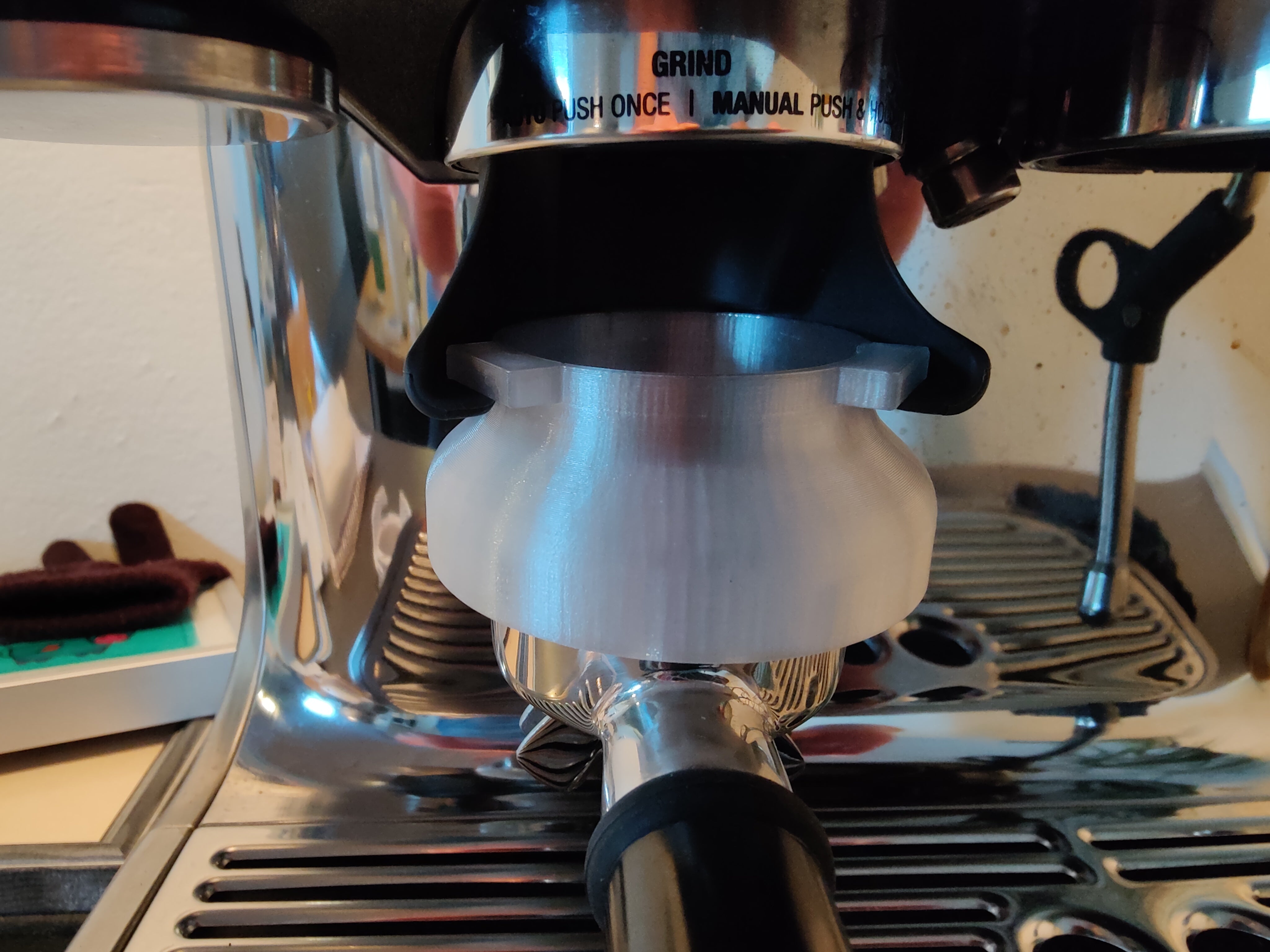 Der Trichter ist mit 54-mm-Siebträgern kompatibel, bietet einen stabilen Sitz und erleichtert die Kaffeedosierung. Das clevere Design bietet ausreichend Platz für effektives Tampen des Kaffees und trägt so zu einem gleichmäßigeren und schmackhafteren Espresso bei.