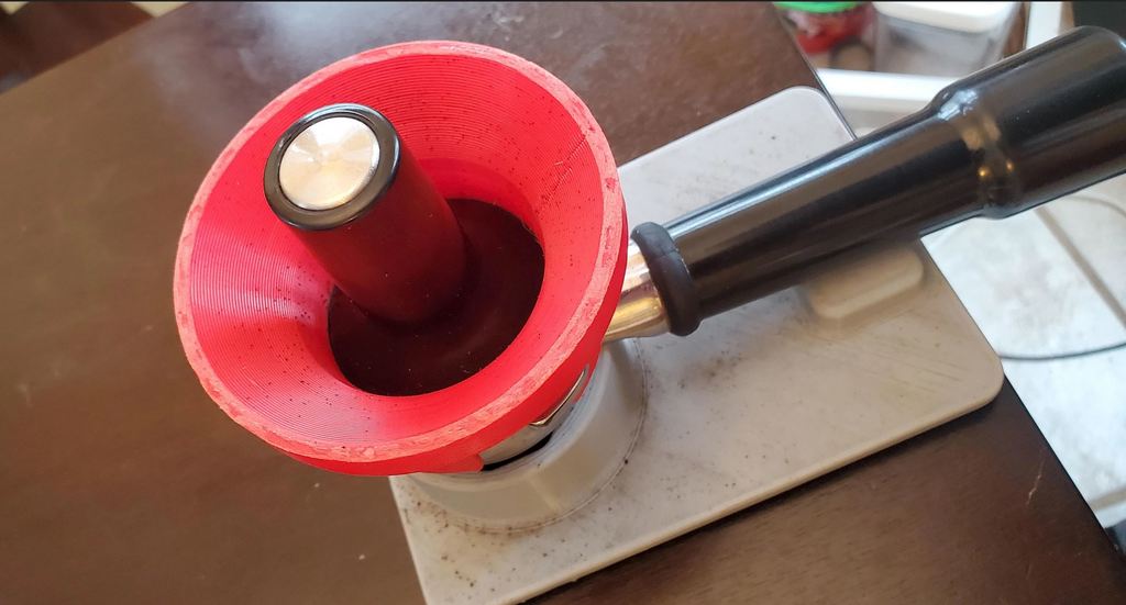 Dieser Dosiertrichter wurde entwickelt, um Ihre Kaffeezubereitung zu verbessern, indem er den Abfall beim Mahlen minimiert. Er ist so konzipiert, dass er perfekt auf den 54-mm-Siebträger Breville BES 870 passt, wenn Sie Kaffee mit einer Baratza Sette 270wi-Mühle mahlen. Der Trichter sorgt dafür, dass der gemahlene Kaffee direkt in den Siebträger geleitet wird, ohne auf den Tisch zu kleckern. Das Ergebnis ist eine sauberere Arbeitsfläche und eine effizientere Kaffeeverteilung. Ein praktisches Werkzeug für alle, die ihre Espressozubereitung optimieren möchten.