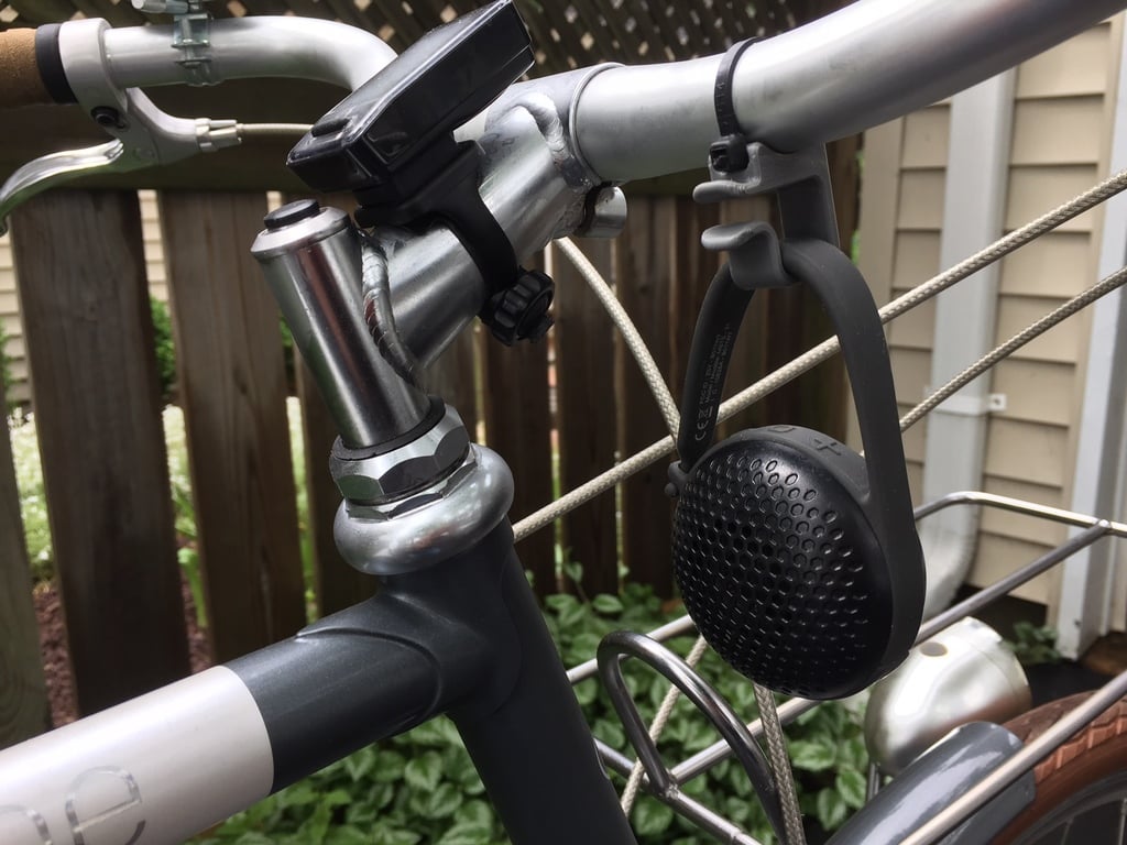 Die Halterung hält den Lautsprecher sicher an seinem Platz und verhindert, dass er am Lenker herunterrutscht und gegen das Lenkerrohr schlägt. Gleichzeitig ist das Design so konzipiert, dass sich der Lautsprecher bei Bedarf leicht montieren und demontieren lässt. Die Montage ist unkompliziert und erfordert lediglich einen Kabelbinder, um die Halterung fest am Fahrradlenker zu befestigen.