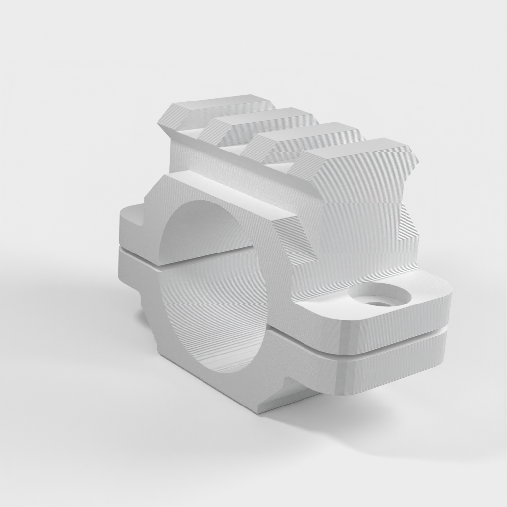 Die Picatinny-Fahrradhalterung ist perfekt für einen Fahrradlenker mit einem Durchmesser von 26 mm. Mit dieser vielseitigen Halterung können Sie verschiedene Zubehörteile wie Telefonhalter, Lichthalterungen und Bluetooth-Lautsprecherhalterungen anbringen, damit Sie beim Radfahren ein noch besseres Erlebnis haben.