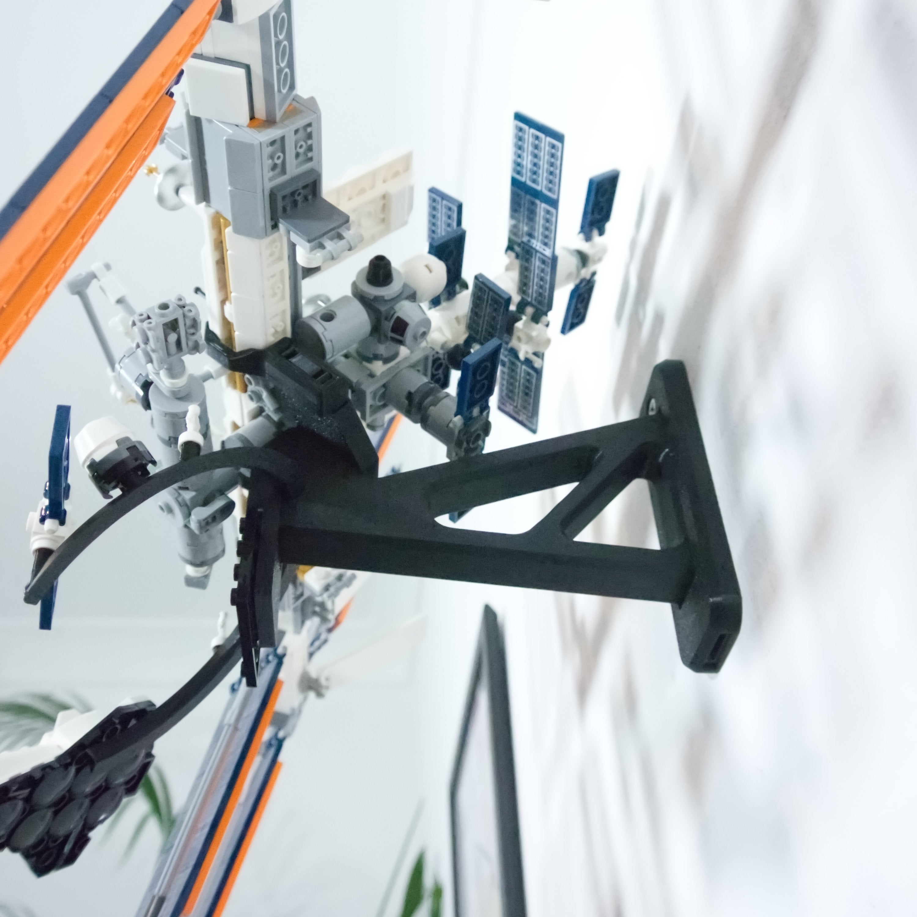 Få en elegant præsentation af din NASA ISS Space Station med dette funktionelle vægbeslag. Designet giver mulighed for nem af- og påmontering, så modellen hurtigt kan tages ned ved behov. Løsningen inkluderer dedikerede holdere til både rumfærgen, satellitter og figurer, hvilket samler hele udstillingen sikkert på væggen.