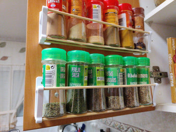 Die elegante und schlichte Konstruktion sorgt dafür, dass Ihre Gewürze immer im Fokus stehen, ohne sichtbare Dübel oder Klebereste. Sein stilvolles Design passt in eine moderne Kücheneinrichtung und ermöglicht Ihnen die praktische Organisation Ihrer Zutaten.