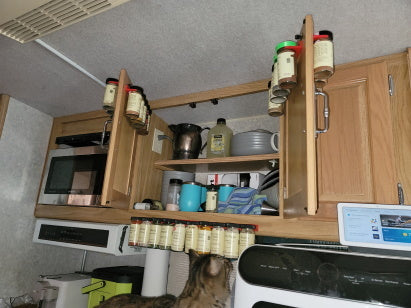 Das System ist flexibel und kann durch die Größenanpassung der Clips an andere Gewürzmarken angepasst werden. Dadurch ist es eine ideale und platzsparende Gewürzaufbewahrung , besonders geeignet für kleinere Küchen, Wohnmobile oder andere Orte, an denen es auf optimale Raumausnutzung ankommt.