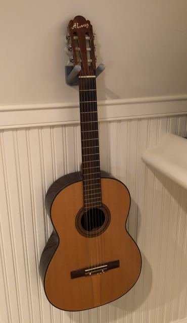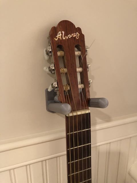 Dieser Kleiderbügel ist für eine klassische Gitarre mit einem Halsdurchmesser von 57 mm am Sattel konzipiert. Änderungen sind einfach, da es sich um eine STL-Datei handelt.