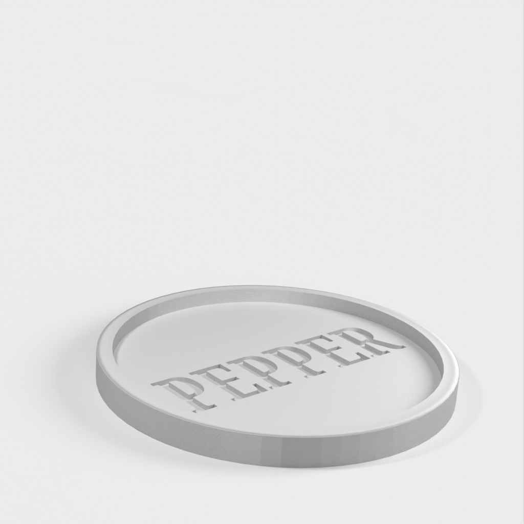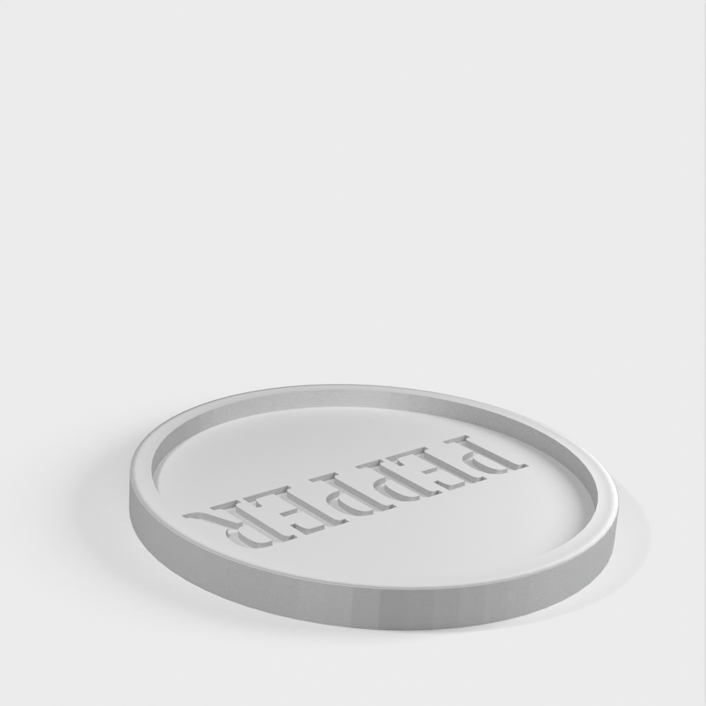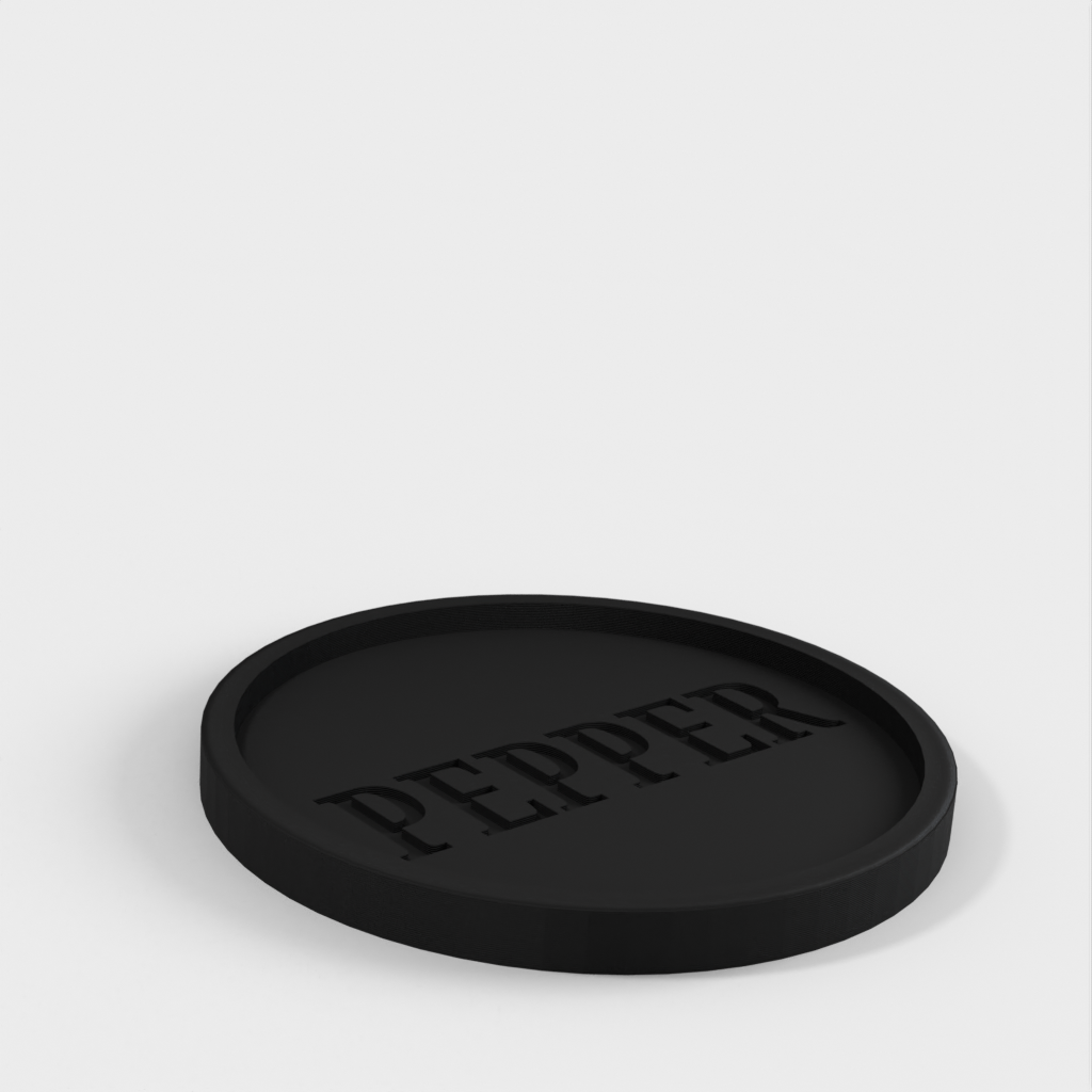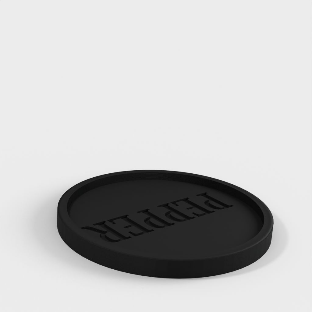 Ein lustiges Detail ist das Wort „Pfeffer“, das als Negativfeld am Boden des Tabletts aufgedruckt ist und mit gemahlenem Pfeffer gefüllt ist. Sobald es vollständig gefüllt ist, sollten Sie darüber nachdenken, eine Schicht aus lebensmittelechtem Harz hinzuzufügen, um den Pfeffer im Wort „Pfeffer“ zu fixieren.