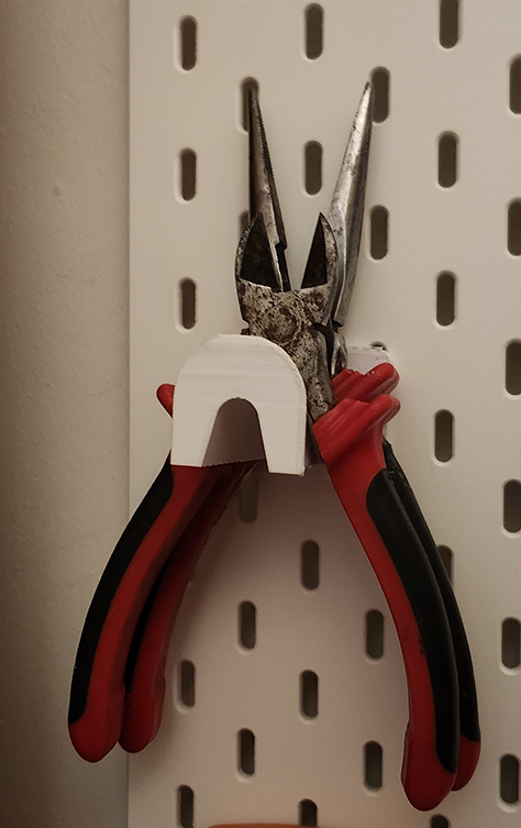 Universeller Zangenhalter für Ikea Skadis Tisch. Halten Sie Ihre Zangen organisiert und leicht zugänglich mit diesem Halter, der perfekt zum Skadis-System von Ikea passt.