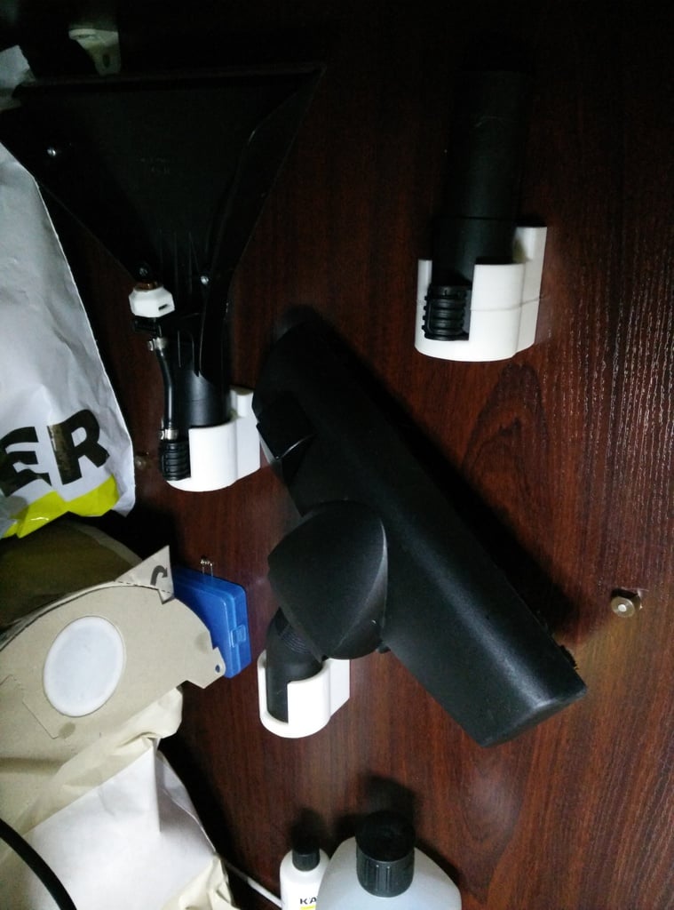 Dies ist ein Düsenwandhalter für den Kärcher Staubsauger. Es ist so konzipiert, dass die Düse bei Nichtgebrauch sicher an Ort und Stelle bleibt. Es passt auf Düsen mit einem Außendurchmesser von 39 mm und einem Innendurchmesser von 35 mm.