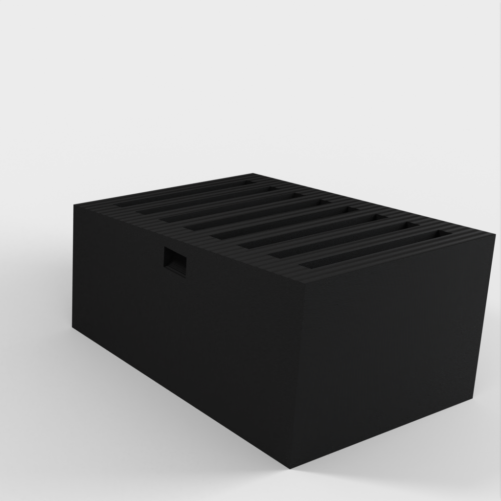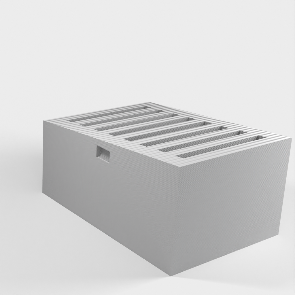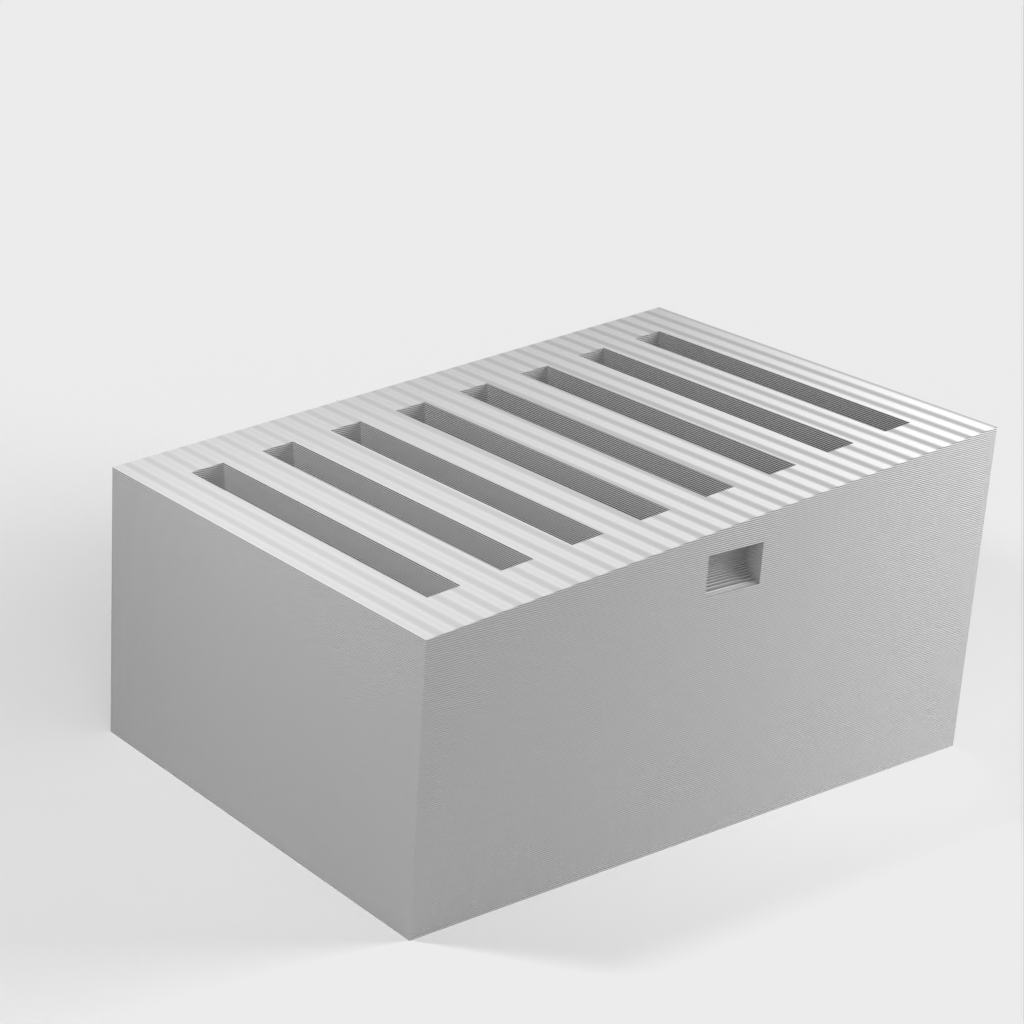 Der Mark 2 SD-Kartenhalter ist eine verbesserte Version des einfachen SD-Kartenhalters. Dieses Modell bietet weiterhin Platz für 8 Karten, allerdings sind die Kartenfächer jetzt etwas größer, was das Einsetzen und Herausnehmen der Karten erleichtert. Anstatt enge Schlitze zu verwenden, um das Herausfallen der Karten zu verhindern, habe ich dieser Version einen Deckel hinzugefügt, der sicher einrastet.