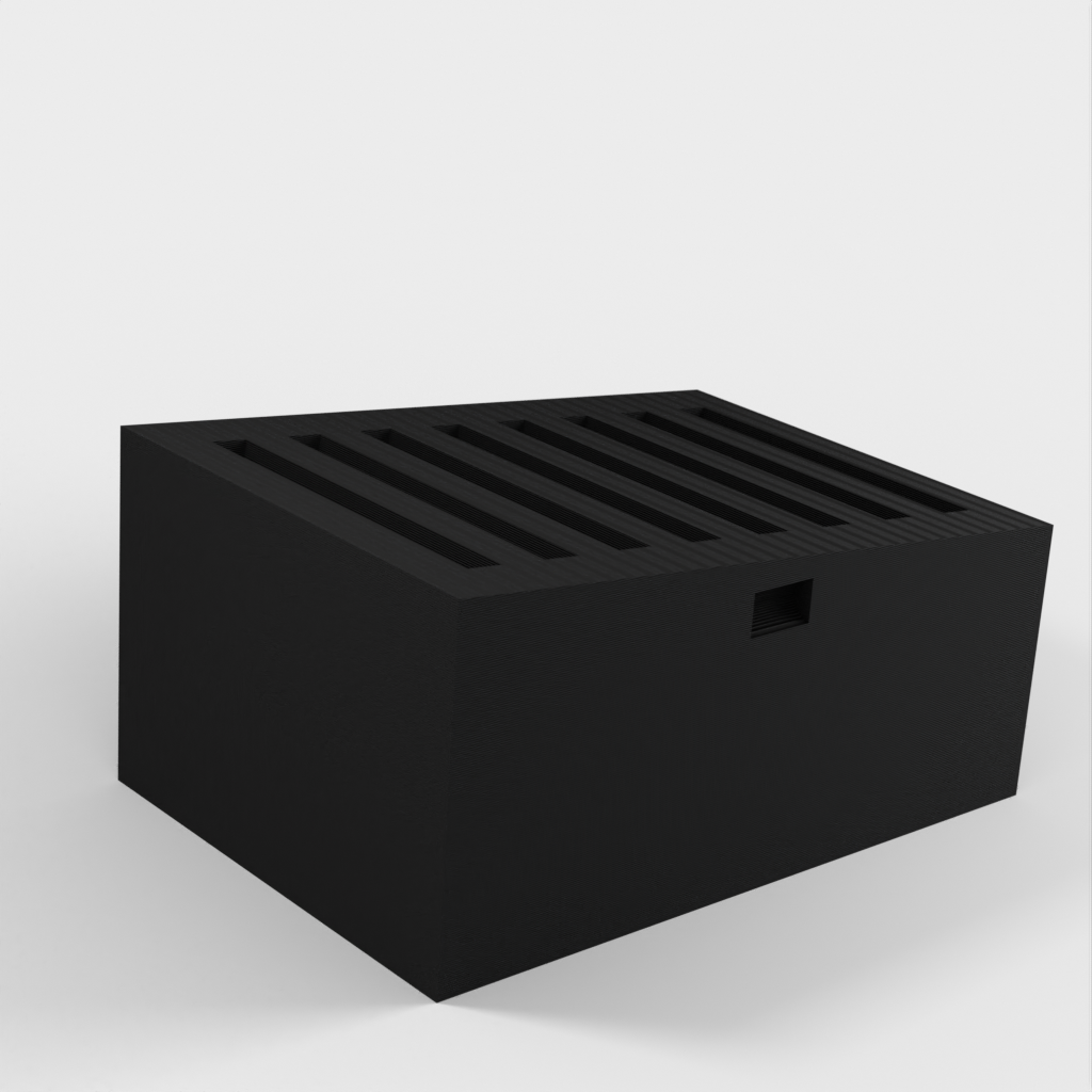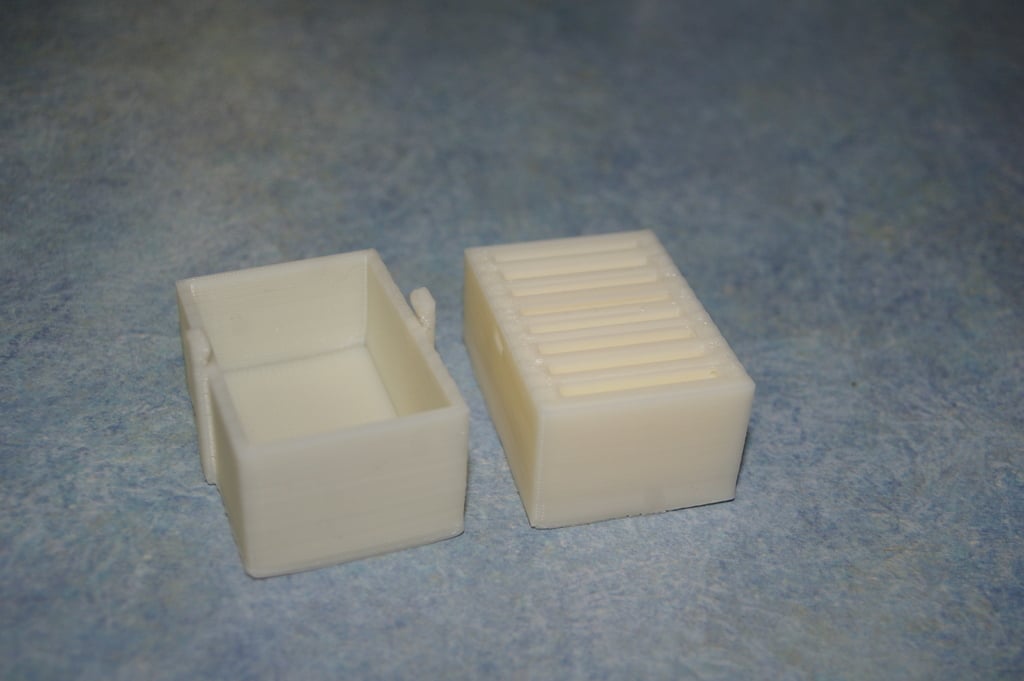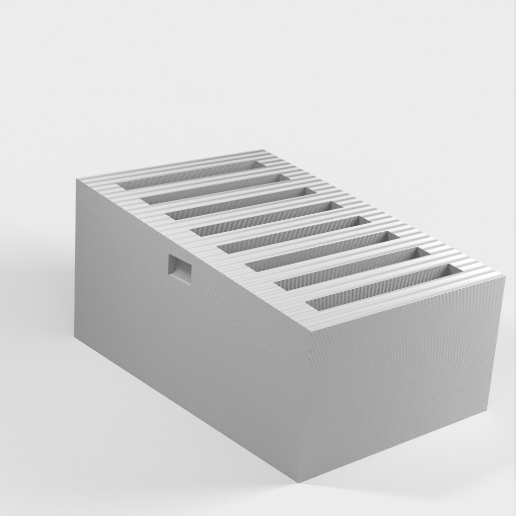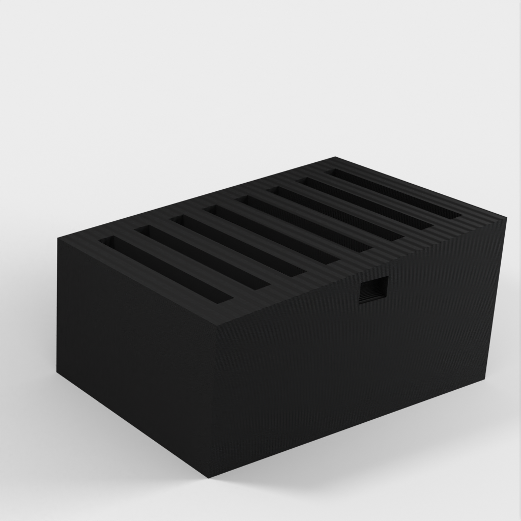 Der Mark 2 SD-Kartenhalter ist eine verbesserte Version des einfachen SD-Kartenhalters. Dieses Modell bietet weiterhin Platz für 8 Karten, allerdings sind die Kartenfächer jetzt etwas größer, was das Einsetzen und Herausnehmen der Karten erleichtert. Anstatt enge Schlitze zu verwenden, um das Herausfallen der Karten zu verhindern, habe ich dieser Version einen Deckel hinzugefügt, der sicher einrastet.