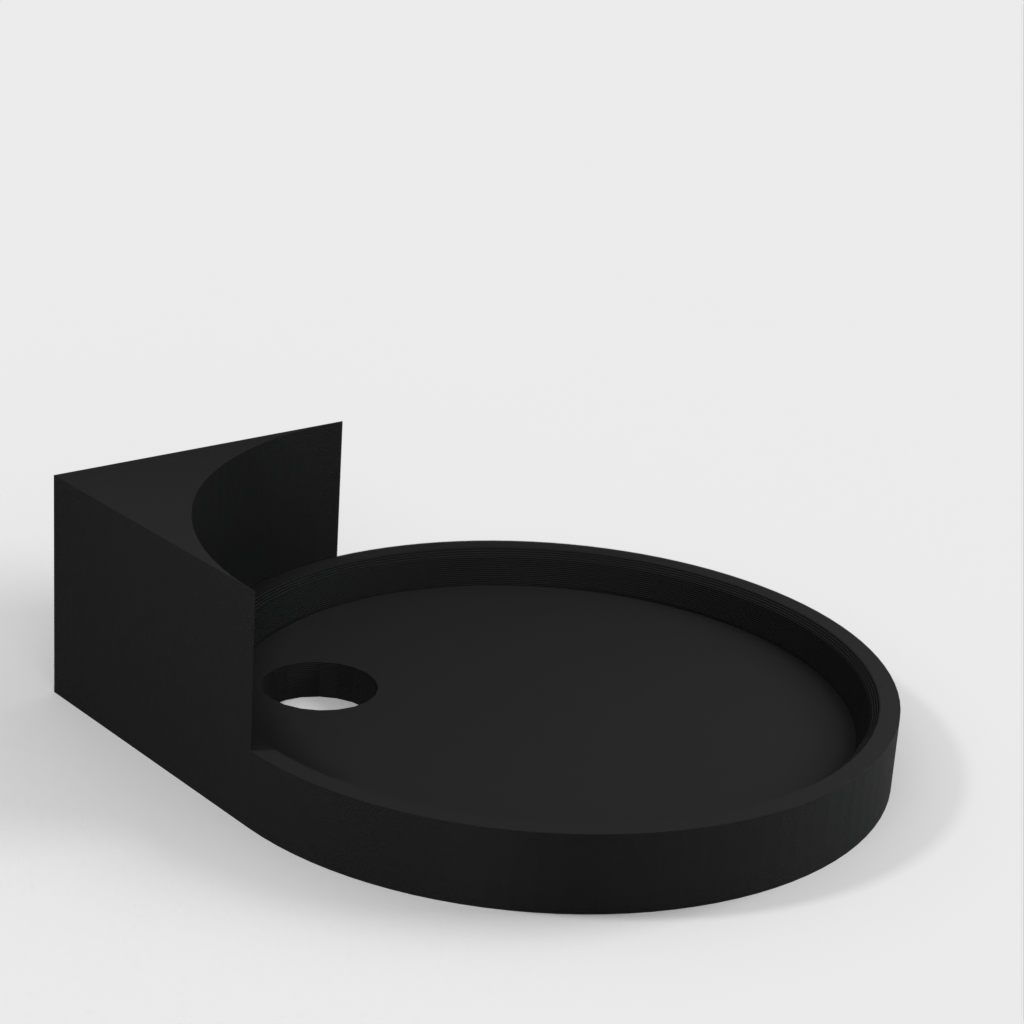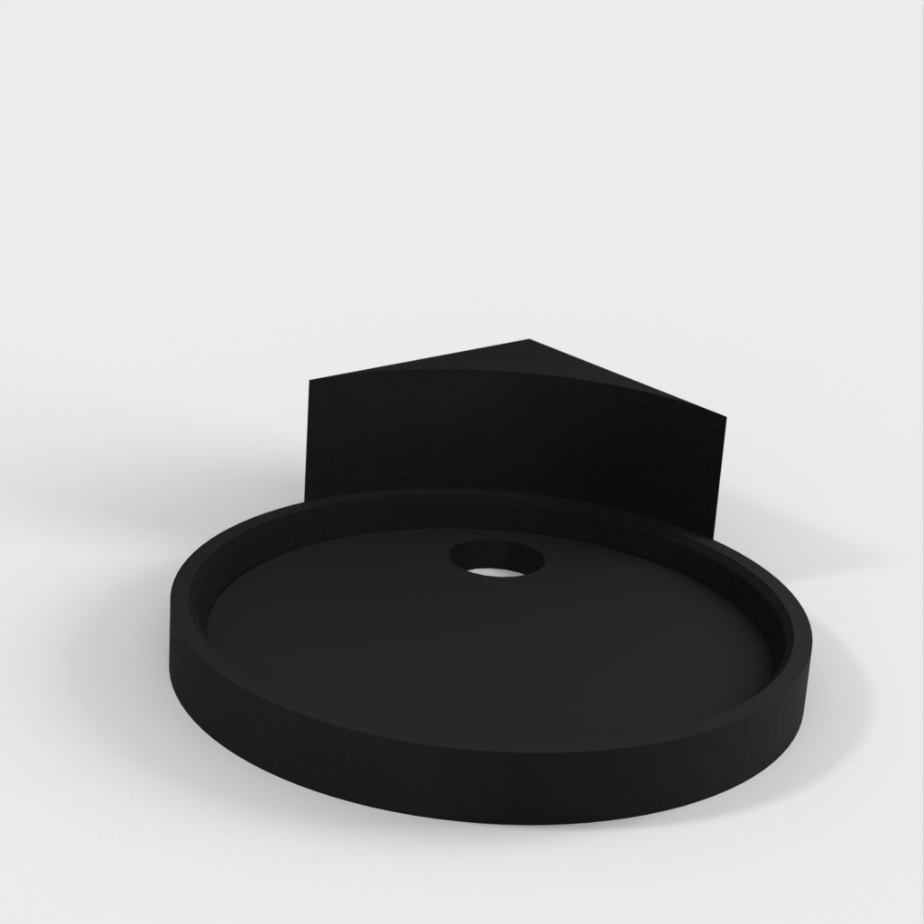 Ein Eckregal mit einem kleinen Loch zum Verlegen eines Stromkabels für eine Kamera. Dieses Eckregal ist für eine einfache Installation konzipiert und eignet sich perfekt, um Ihre Kamera in der Höhe zu halten und gleichzeitig die Kabel organisiert und außer Sichtweite zu halten.